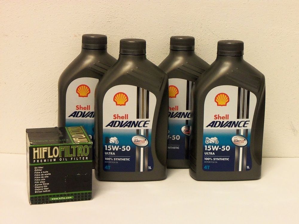 Racingteam verkauft Spezial Ölwechselset für Bimota 1098 DB7 Bj 08 - 14 bestehend aus 4 x 1 Liter Shell Advance Ultra 4T 15W-50 ( 7,-Euro l ) und einem Racing Hiflo Qualitätsölfilter . Vollsynthetisches 4 -Takt Motorenöl für alle luft - und wassergekühlten Motorradmotoren auch mit Nasskupplung . Spe