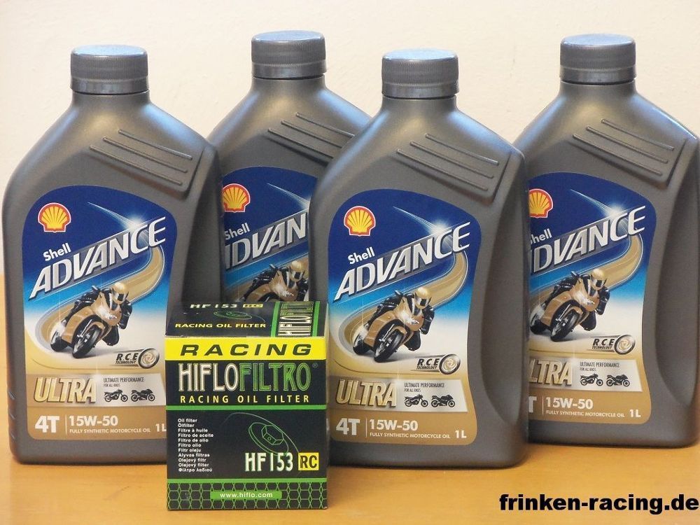 Racingteam verkauft Spezial Ölwechselset für Ducati 1100 Multistrada - S alle Modelle Bj 07 - 09 bestehend aus 4 x 1 Liter Shell Advance Ultra 4T 15W-50 ( 7,-Euro l ) und einem Racing Hiflo Qualitätsölfilter . Vollsynthetisches 4 -Takt Motorenöl für alle luft - und wassergekühlten Motorradmotoren au