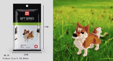• Shiba Inu Hund Figur Tier Bausteine Modell LNO Micro-Bricks