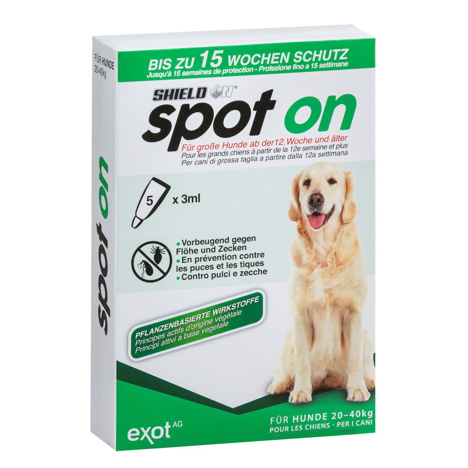 ShieldOn Spot On Floh- und Zeckenschutz für große Hunde - 5 x 3 ml