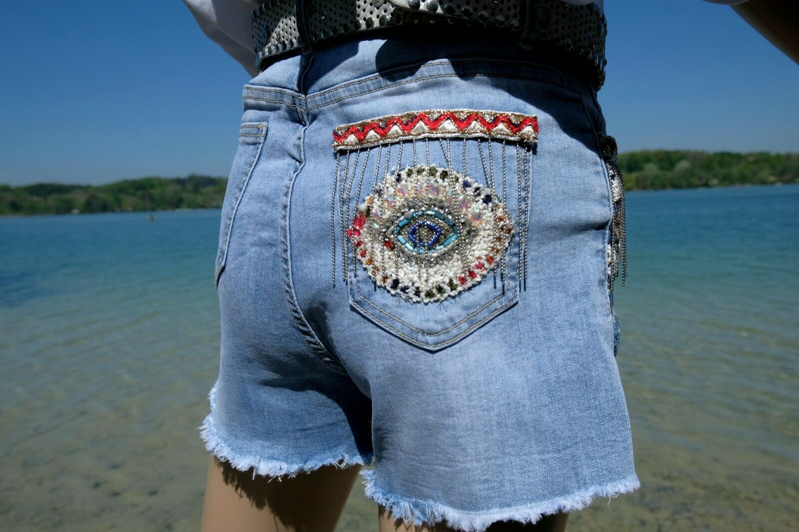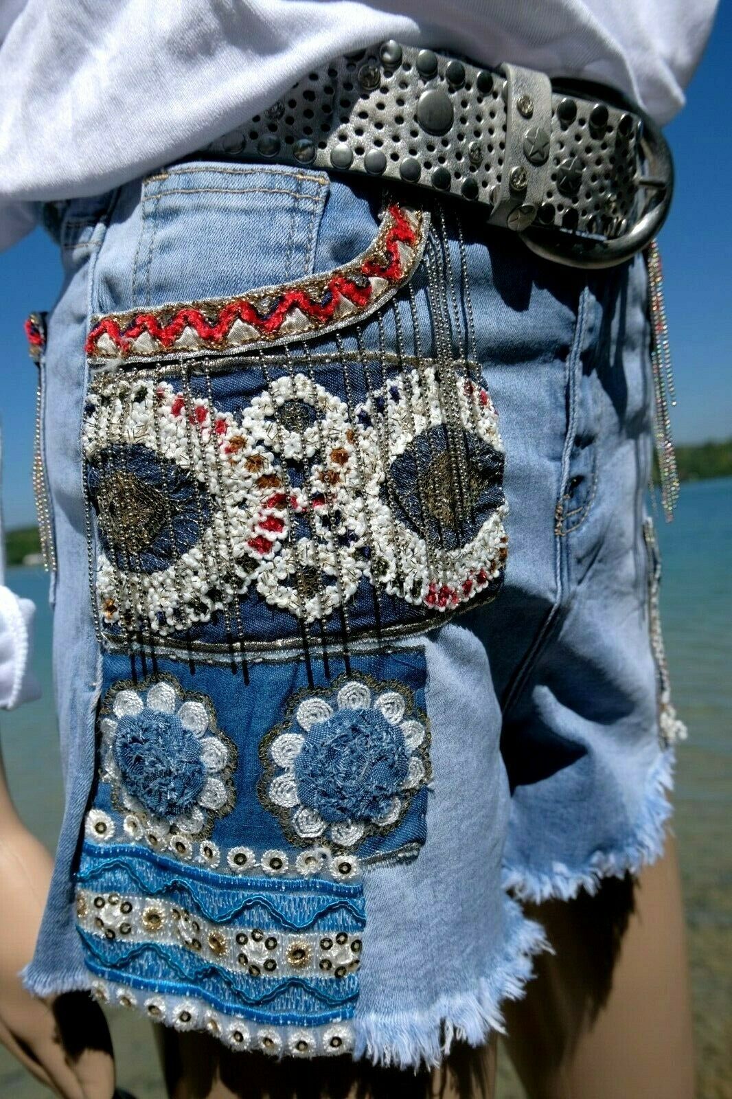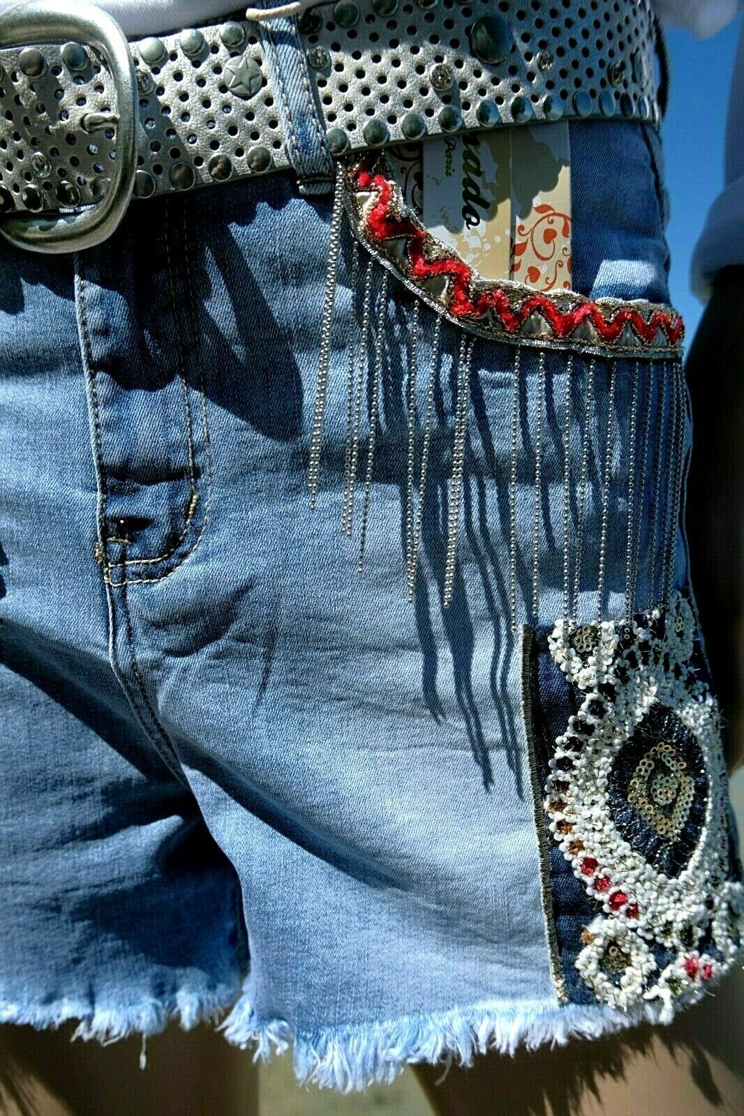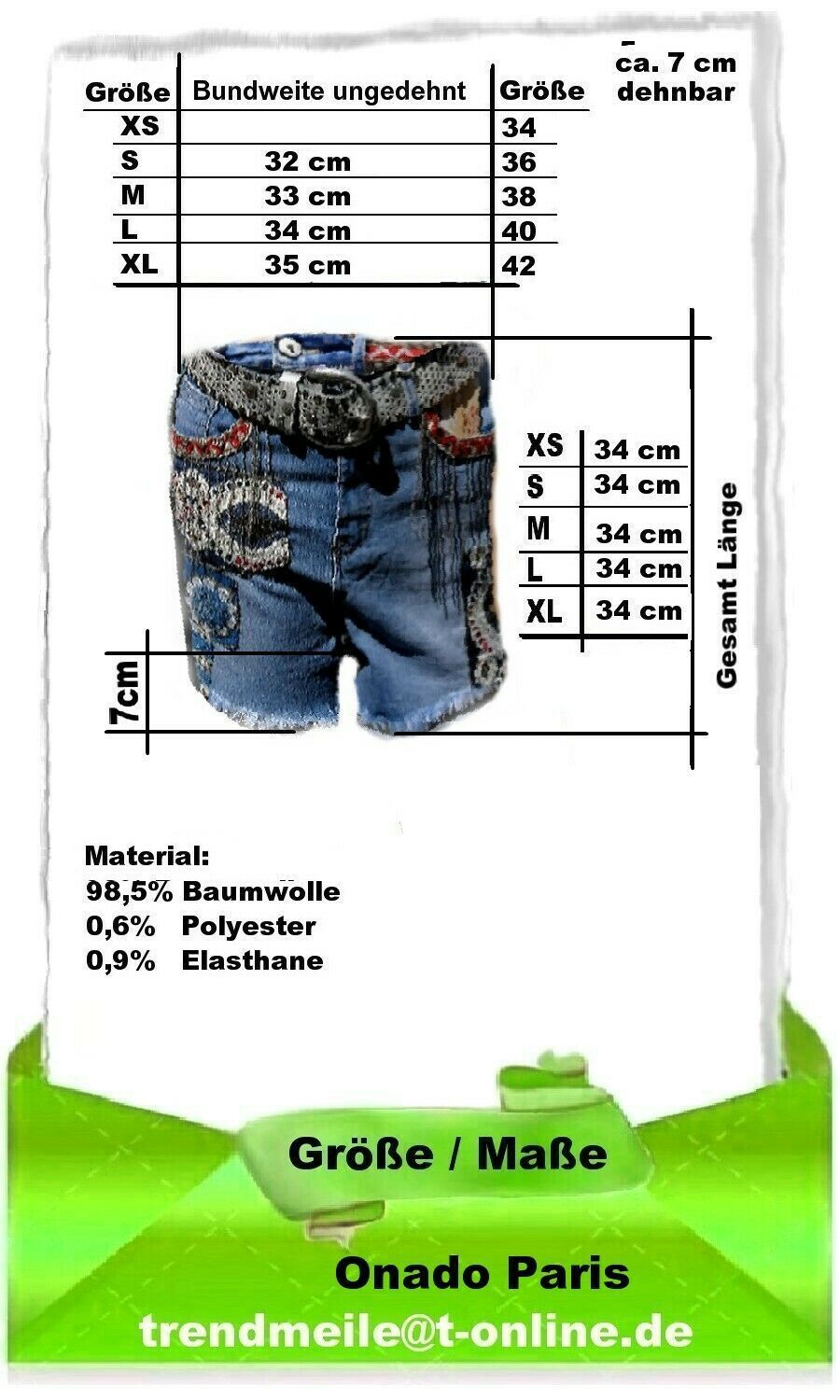 Short kurze Hose Damen Jeans S-M-L-XL Onado Paris Stickerei blau ausgewaschen