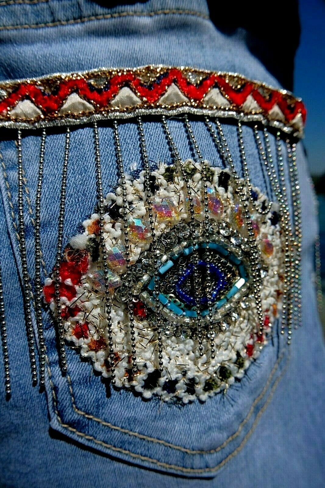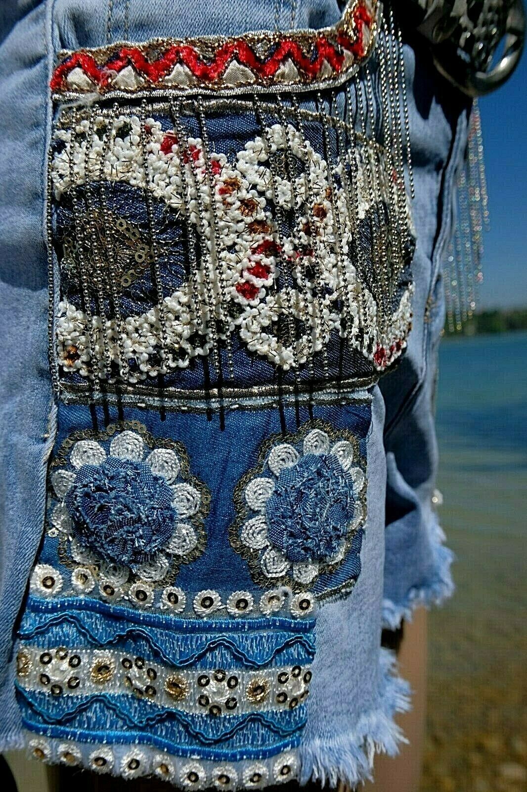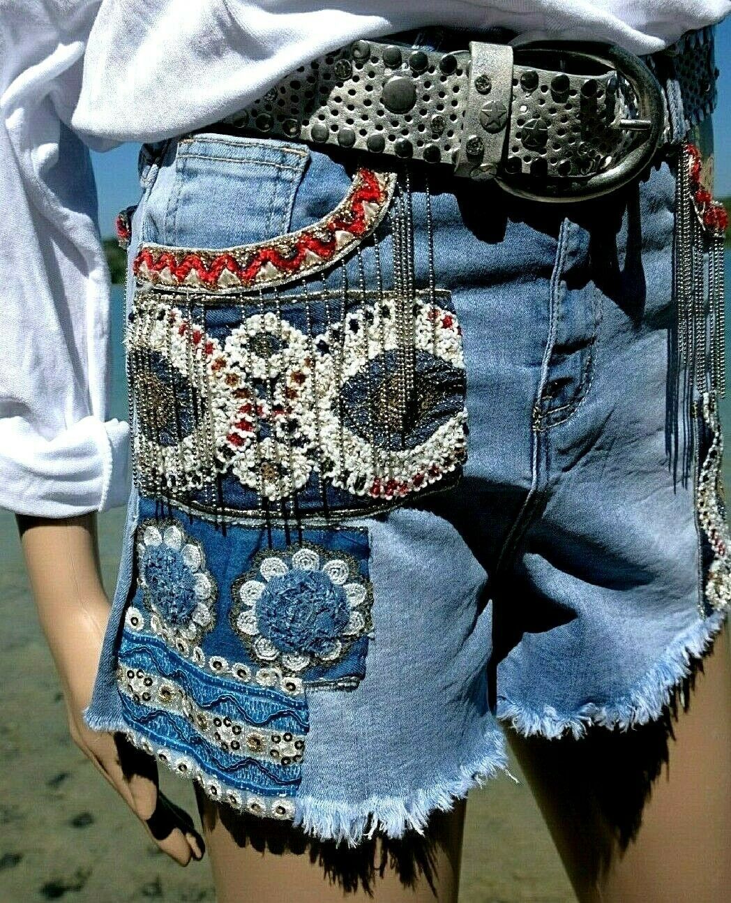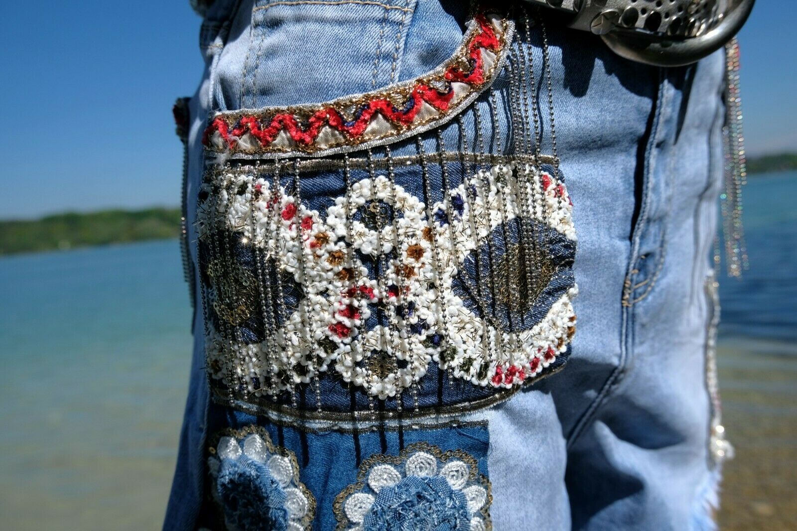 Short kurze Hose Damen Jeans S-M-L-XL Onado Paris Stickerei blau ausgewaschen