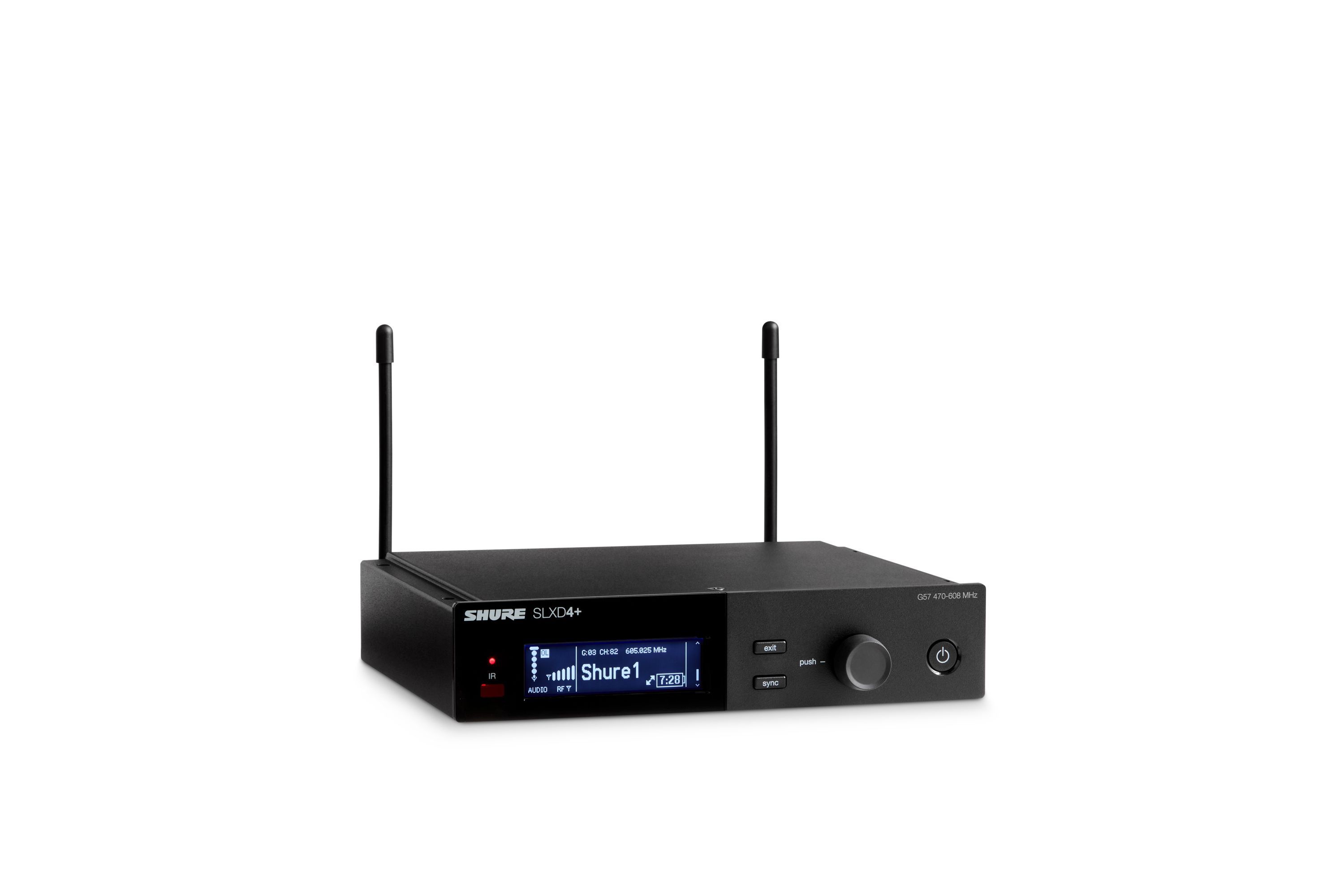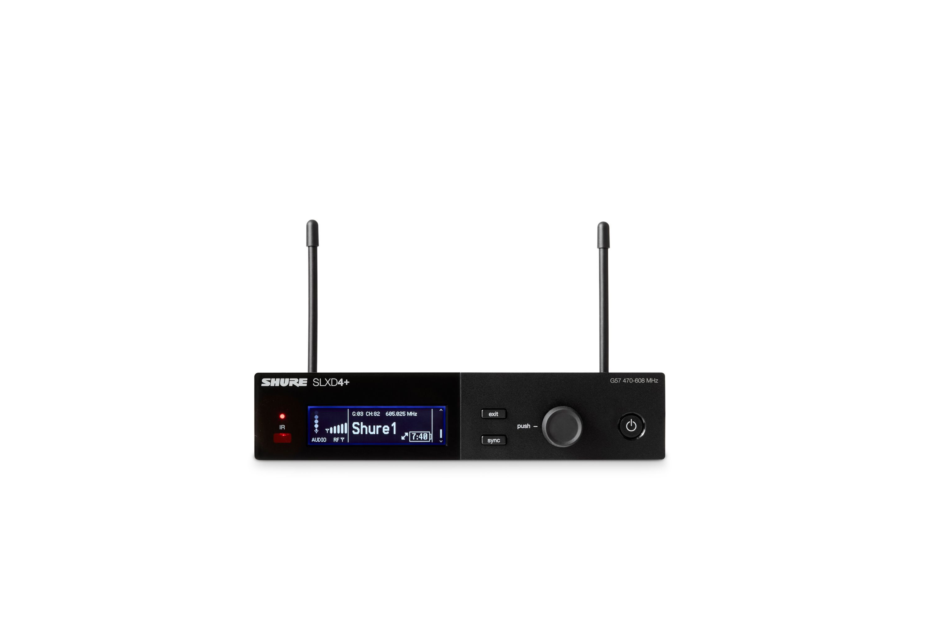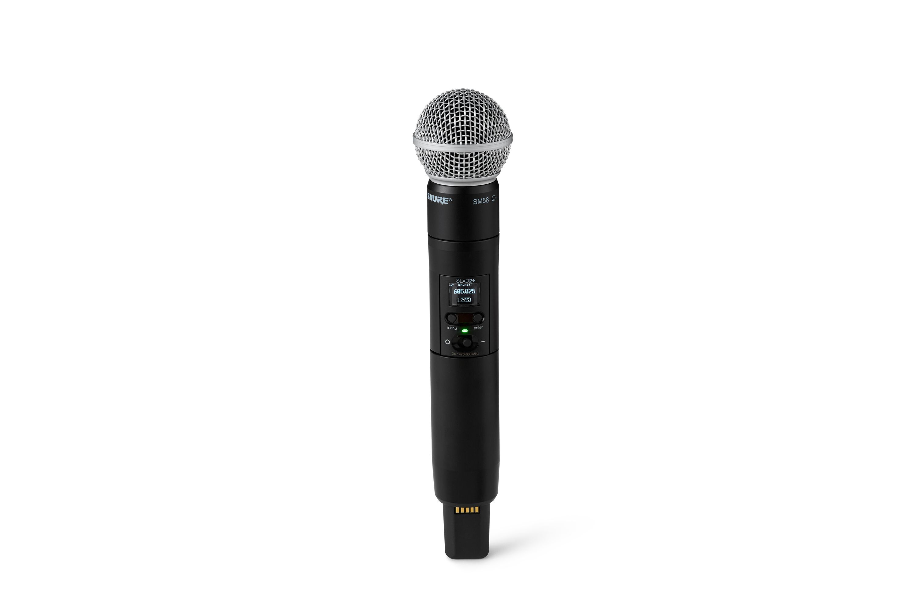 Shure SLXD24+E SM58 - S50 Set aus SLXD4+ Empfänger und SLXD2+ Handsender mit SM58 Kapsel Frequenzbereich S50: 823 - 832 & 863 - 865 MHz Mikrofon Charakteristik: Niere Frequenzgang: 20 - 20.000 Hz Dynamikumfang: >118 dB Schaltbandbreite: 138 MHz schaltbare Sendeleistung: 1 mW 10 mW Transparente 24