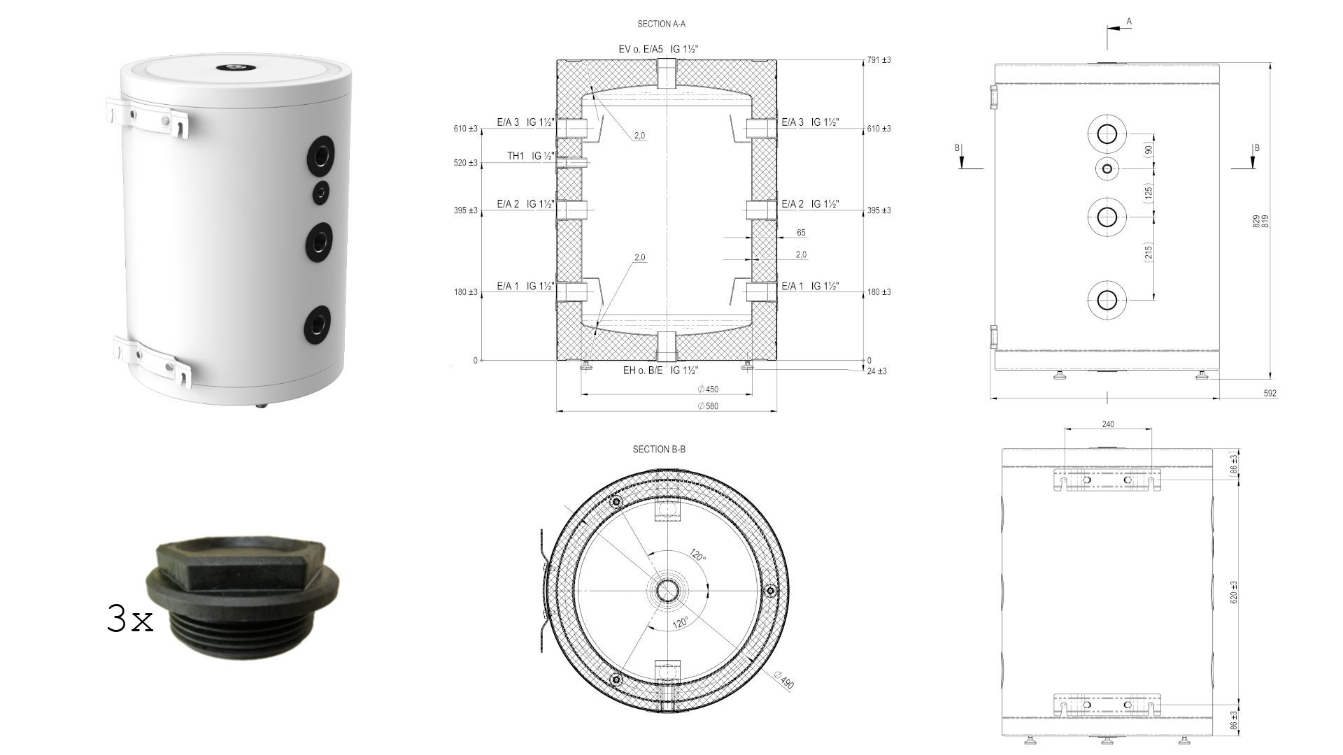 SHWT® EPS 30-160Liter Edelstahl Speicher 8Bar Wärmepumpen Pufferspeicher