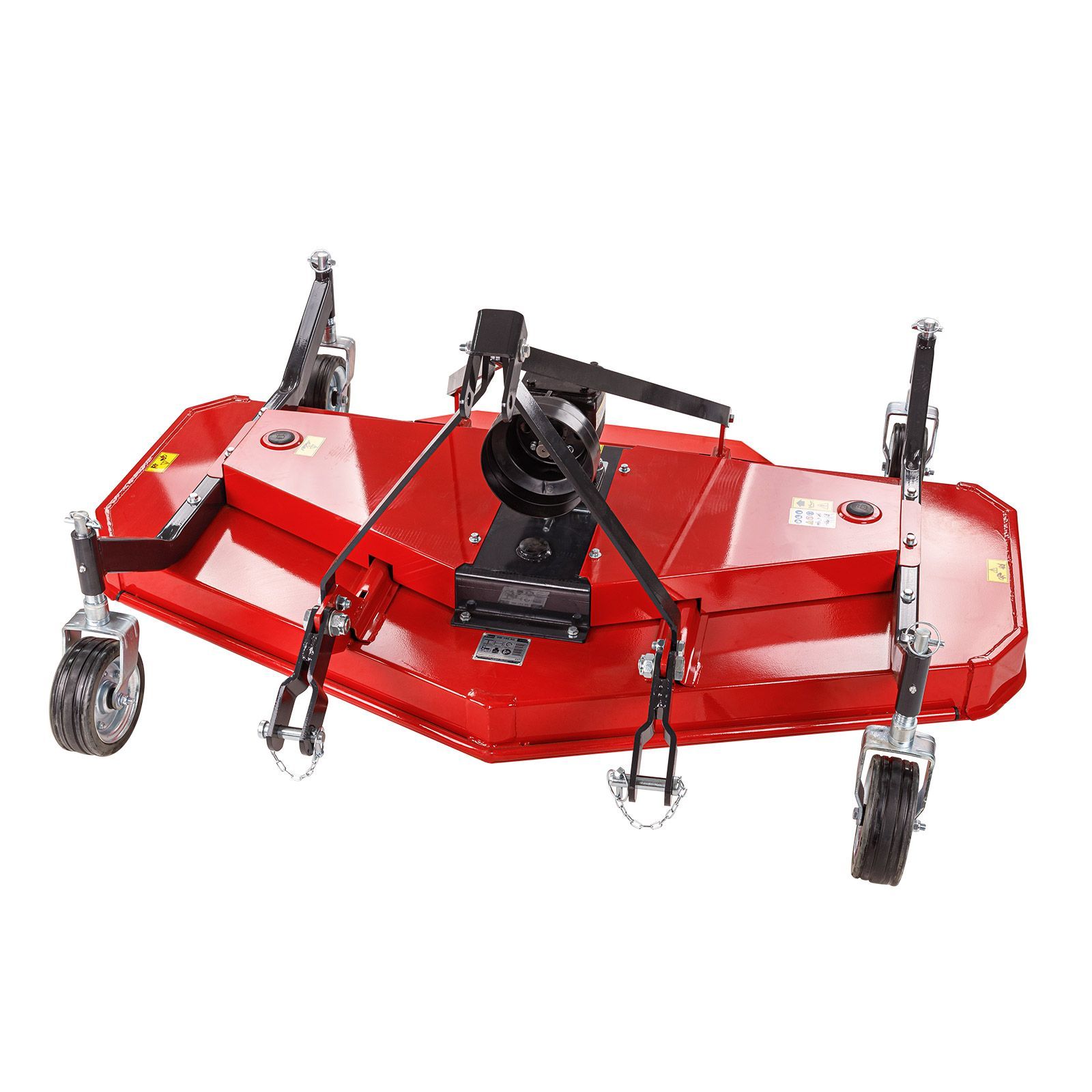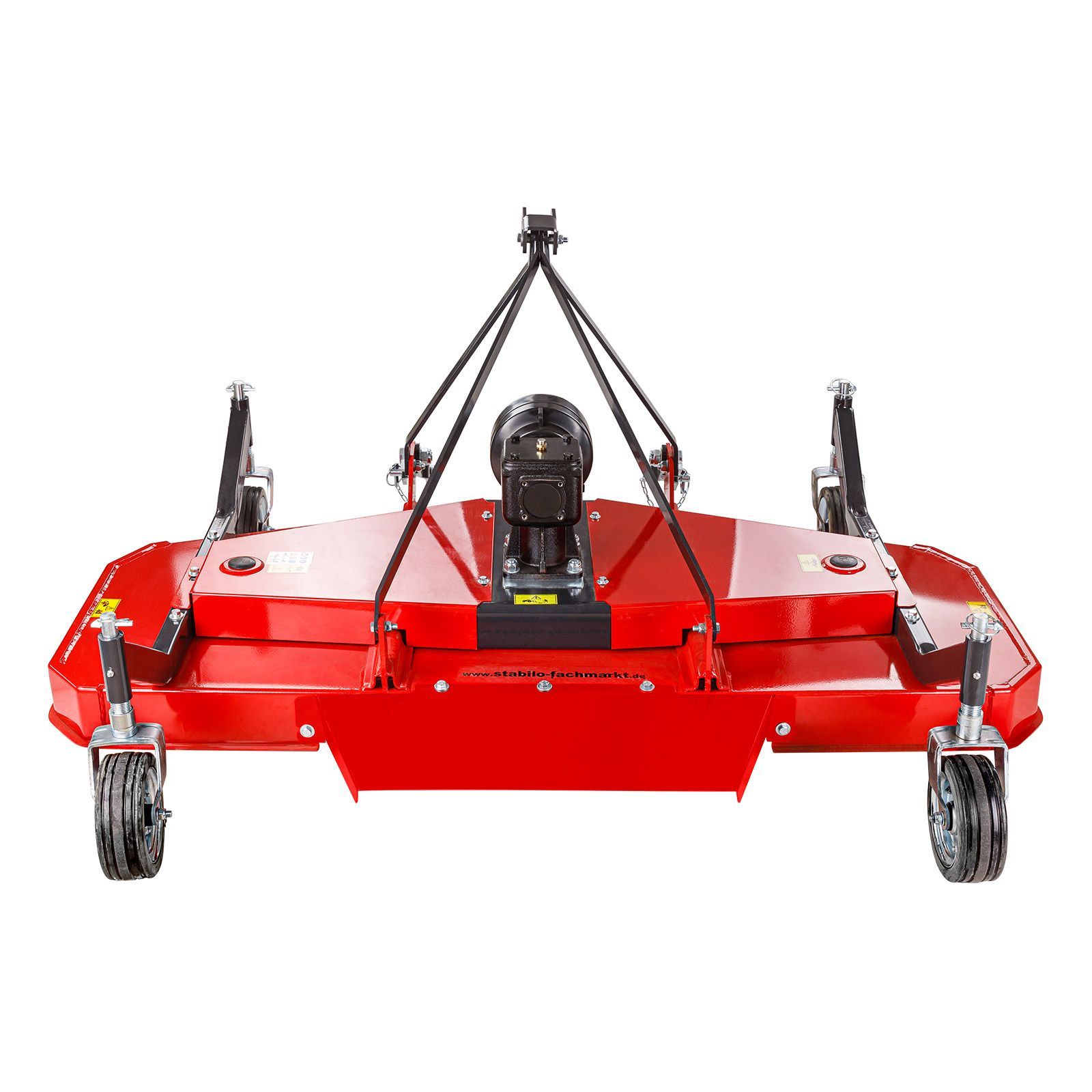 Sichelmulcher Mulcher 180cm Sichelmäher Der Sichelmulcher ist ein Mulcher mit einer Arbeitsbreite von 180 cm und eignet sich perfekt für den Einsatz auf landwirtschaftlichen Flächen, Grünflächen und Gärten. Mit diesem Gerät können Gras und Pflanzenreste aus Weinbau, Obstbau, Landwirtschaft, Garten- und Parkanlagen sowie Grünlandflächen leicht gemäht und zerkleinert werden. Der Mulcher ist solide und robust gebaut, verfügt über ein langlebiges Getriebe und Fettnippel an relevanten Schmierstellen. Die Keilriemenübersetzung sorgt für eine effiziente Leistungsübertragung. Die Zapfwelle ist nicht im Lieferumfang enthalten, aber das Gerät wird bereits montiert geliefert. Lediglich die Aufnahmen für den Oberlenker, den Unterlenker, die Zapfwellenabdeckung und den Mähauswurf müssen noch angeschraubt werden. Produktmerkmale: Solide und robuste BauweiseLanglebiges GetriebeFettnippel an relevanten SchmierstellenKeilriemenübersetzungLieferung ohne ZapfwelleLieferung erfolgt montiert (lediglich die Aufnahmen für Oberlenker, Unterlenker,Zapfwellenabdeckung und Mähauswurf müssen noch angeschraubt werden) Hinweis: Achtung bitte beachten Sie: Vor Erstinbetriebnahme des Gerätes unbedingt prüfen und sicherstellen, dass das Gerät mit ausreichend Öl befüllt ist!Lesen Sie die Bedienungsanleitung sorgfältig durch.Abgebildete Zapfwelle ist NICHT im Lieferumfang enthalten! Diese können Sie separat bei uns bestellen.   Technische Daten180 cm Arbeitsbreite3 Messer: 62 cm langZapfwellenantrieb 540 U/minKat 1 Aufnahme: Unterlenker 22 mm, Oberlenker 19 mmFür Traktoren von 30 bis 55 PS4 große 20 cm Lenkräder, höhenverstellbarUnterlenkeraufnahme verstellbar vertikalAbstand Unterlenkeraufnahme: ca. 54,5 - 64 cmBenötigte Zapfwelle 85-105 cmSchnitthöhe: 30-80 mmAbmessungen BxTxH: 187x150x90 cmGewicht: 192 kg