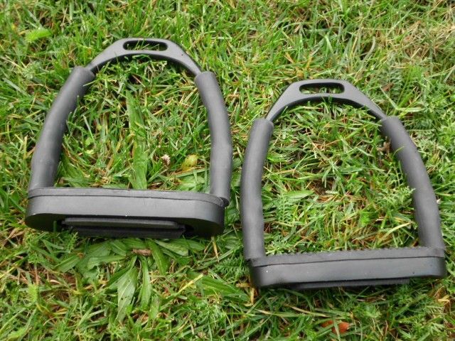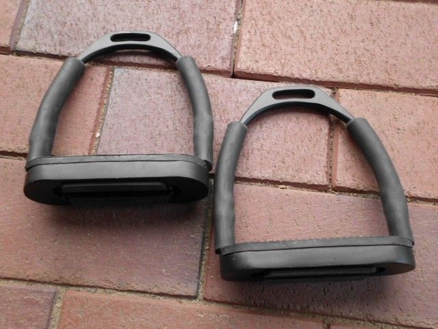 Sicherheitssteigbügel von USG schwarz m. Gelenk aus Edelstahl 12 cm Trittbreite