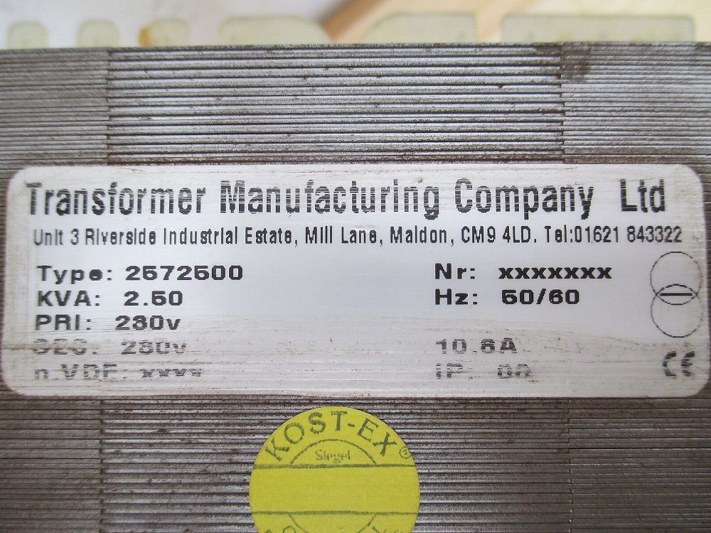 KOST-EX Elektrofachhandel Bestellnummer T8 111 Transformer Manufacturing Transformator Typ 2572500 Trafo Sicherheitstrenntransformator Glätttrafo Einphasentrafo pri. V: 230 V sec. V: 230 V sec. A: 10,6 A 2,5 kVA Maße L x B x H: 118 x 200 x 250 mm Gewicht: 20,6 kg Sicherheitsprüfung nach VDE durchgef