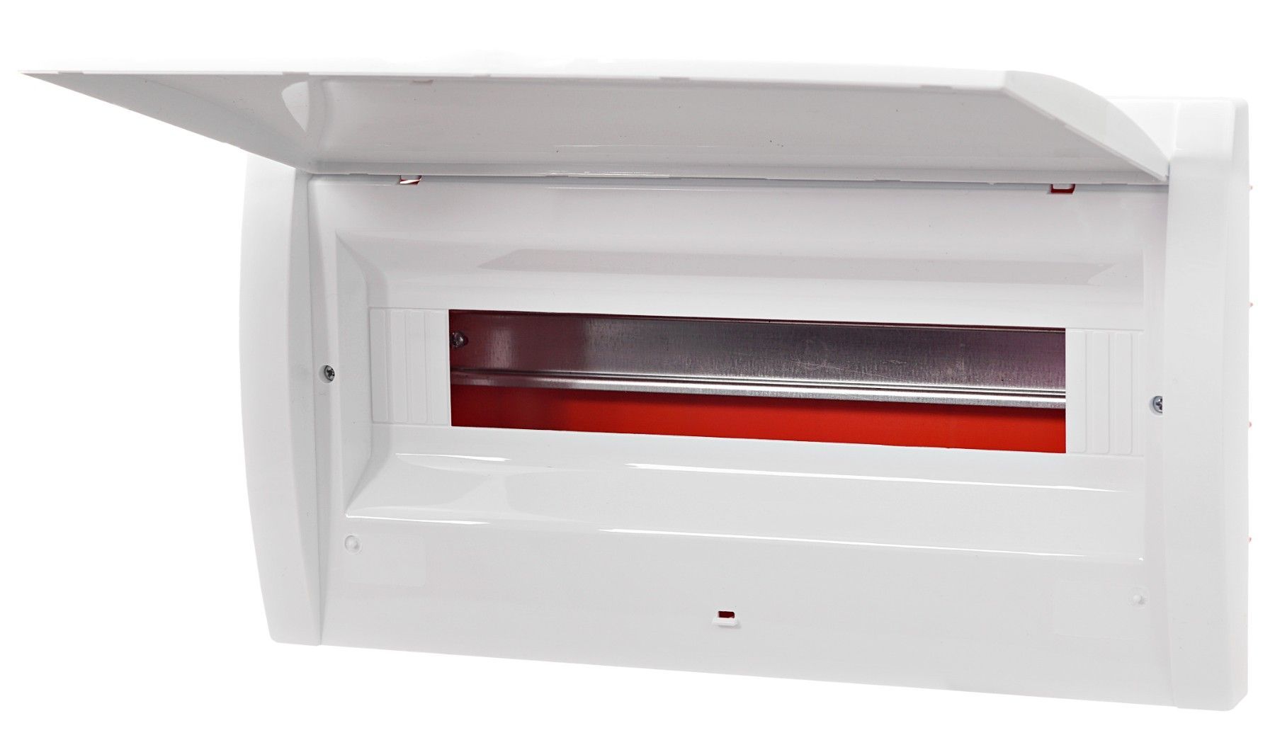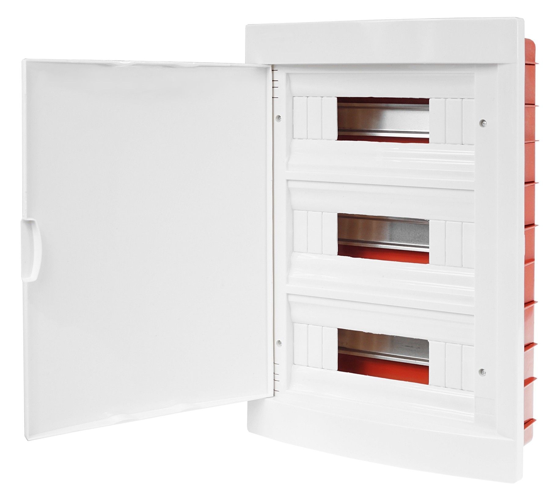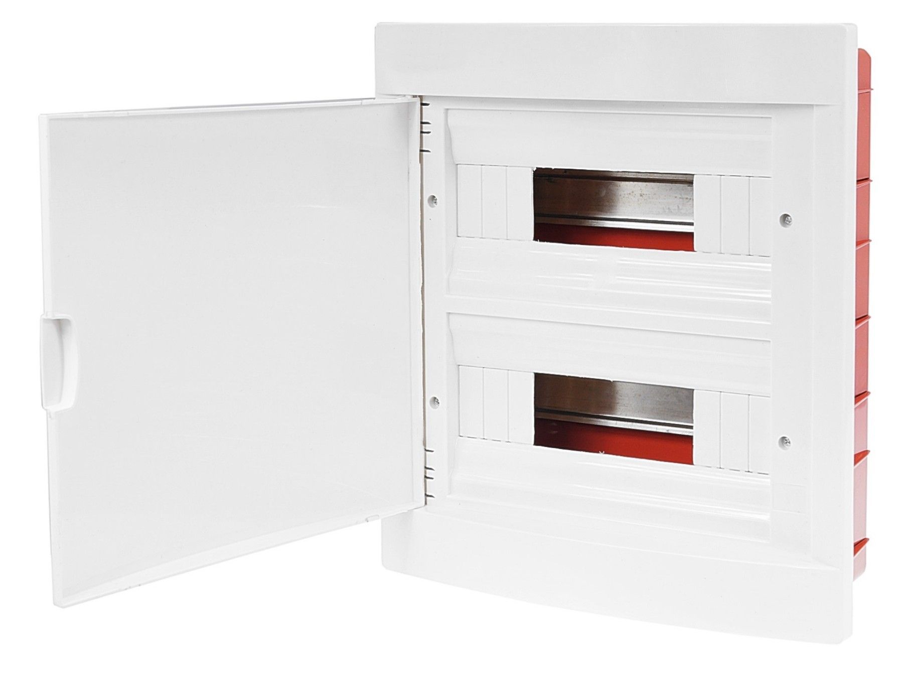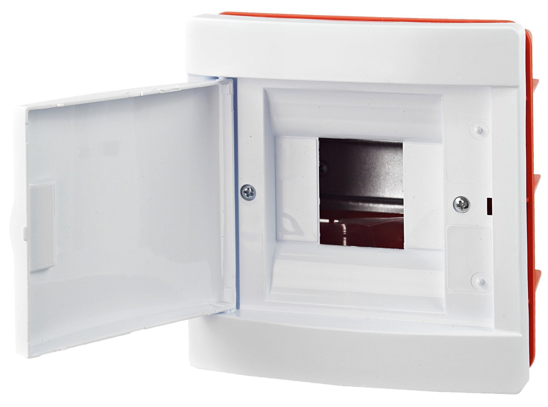 Sicherungskasten aus hochwertigem Kunststoff. In den Gehäusewänden befinden sich Aussparungen zur einfachen Kabeleinführung. -Schutzart: IP40 -Ausgerüstet mit Hutschiene TH35 -Aufputz-Installation, horizontal -Aus hochwertigem Kunststoff -Links aufgehängte Tür -Schwächung für einfache Verdrahtung Ab