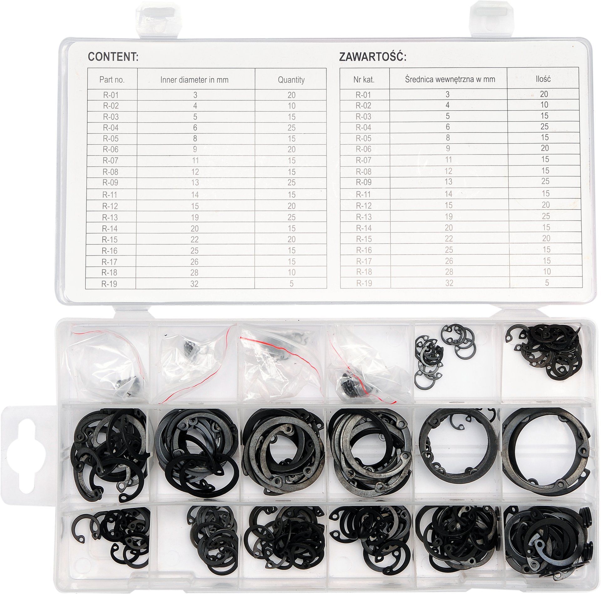 Yato Sicherungsringe Sortiment 300-teilig – Innenringe Seger Ringe Ø3–32 mm, Manganstahl,