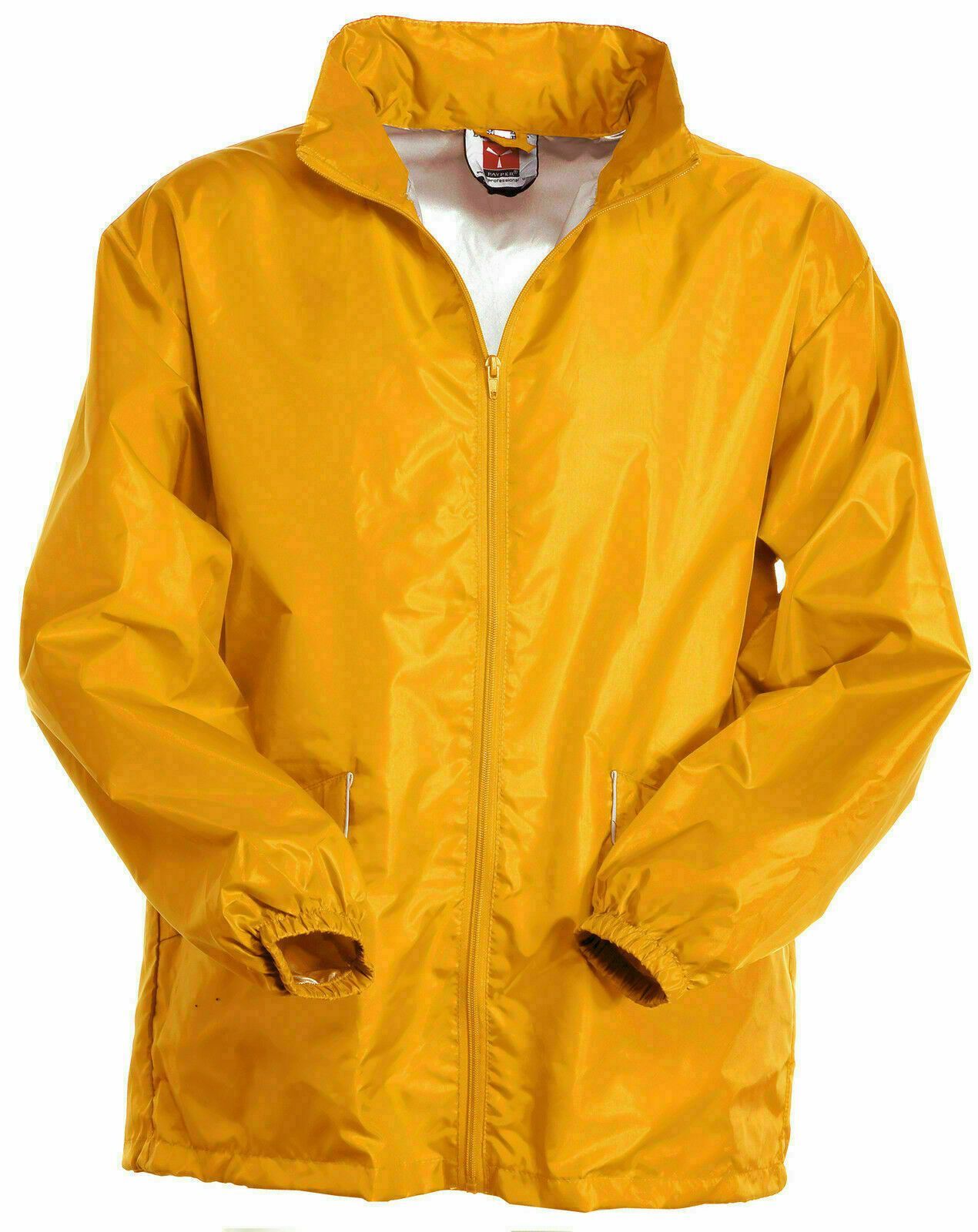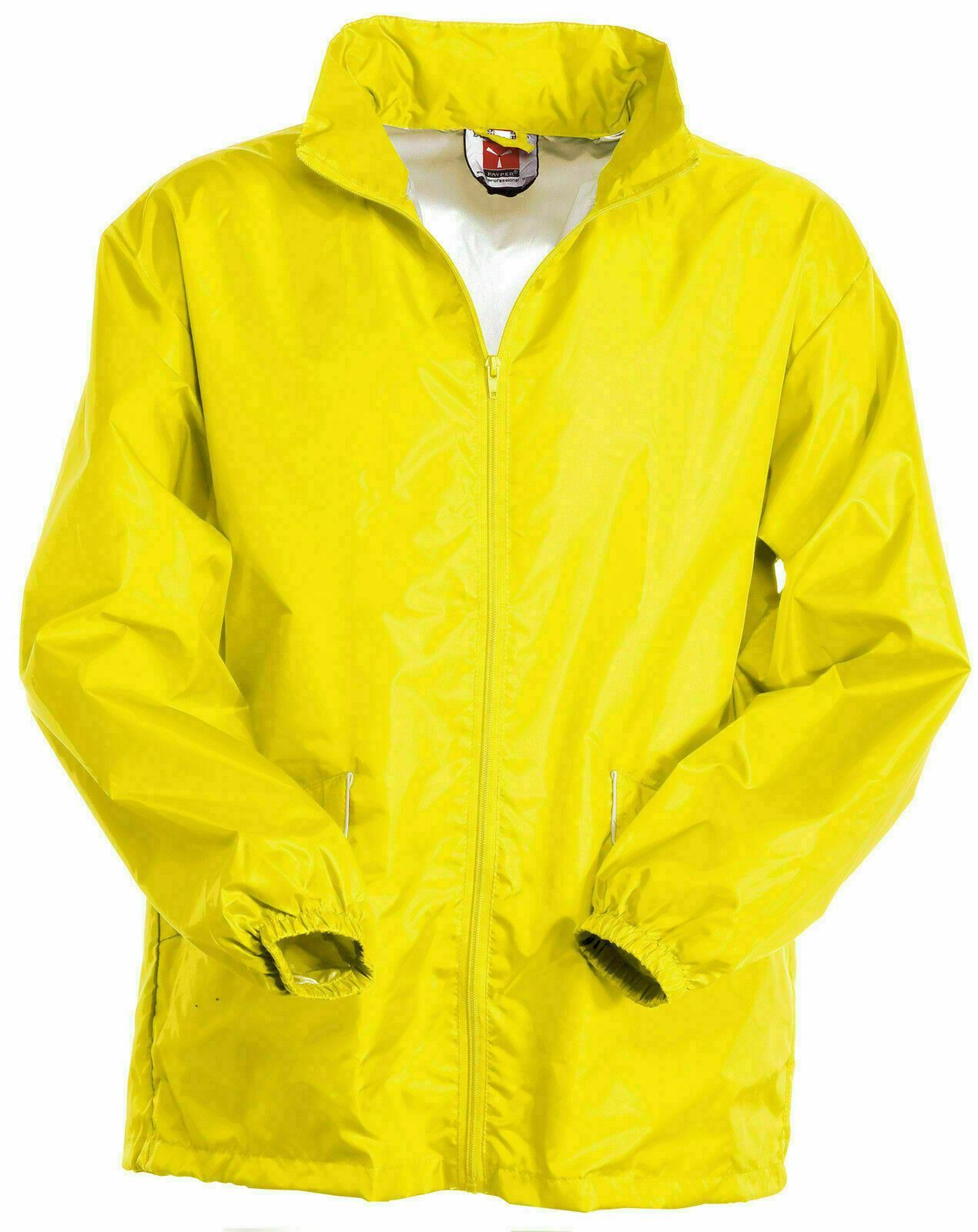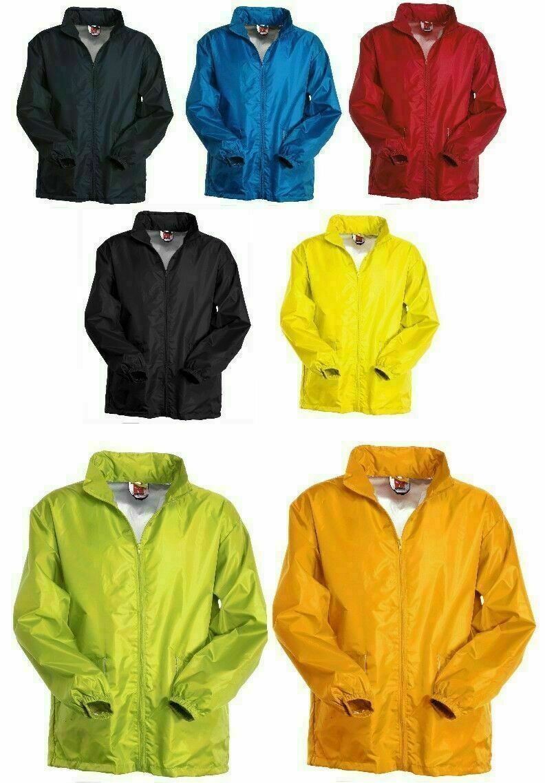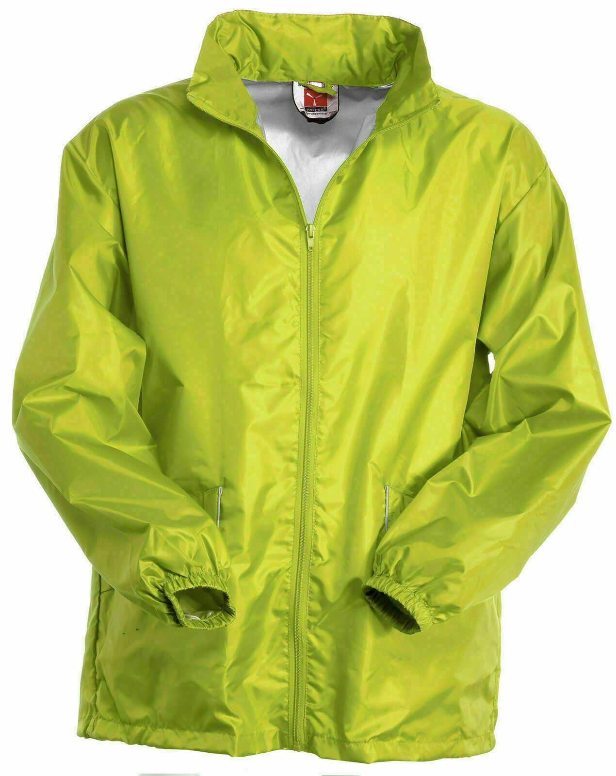 Sichtbare Regenjacke Wetterjacke Fahrradjacke mit im Kragen einrollbarer Kapuze