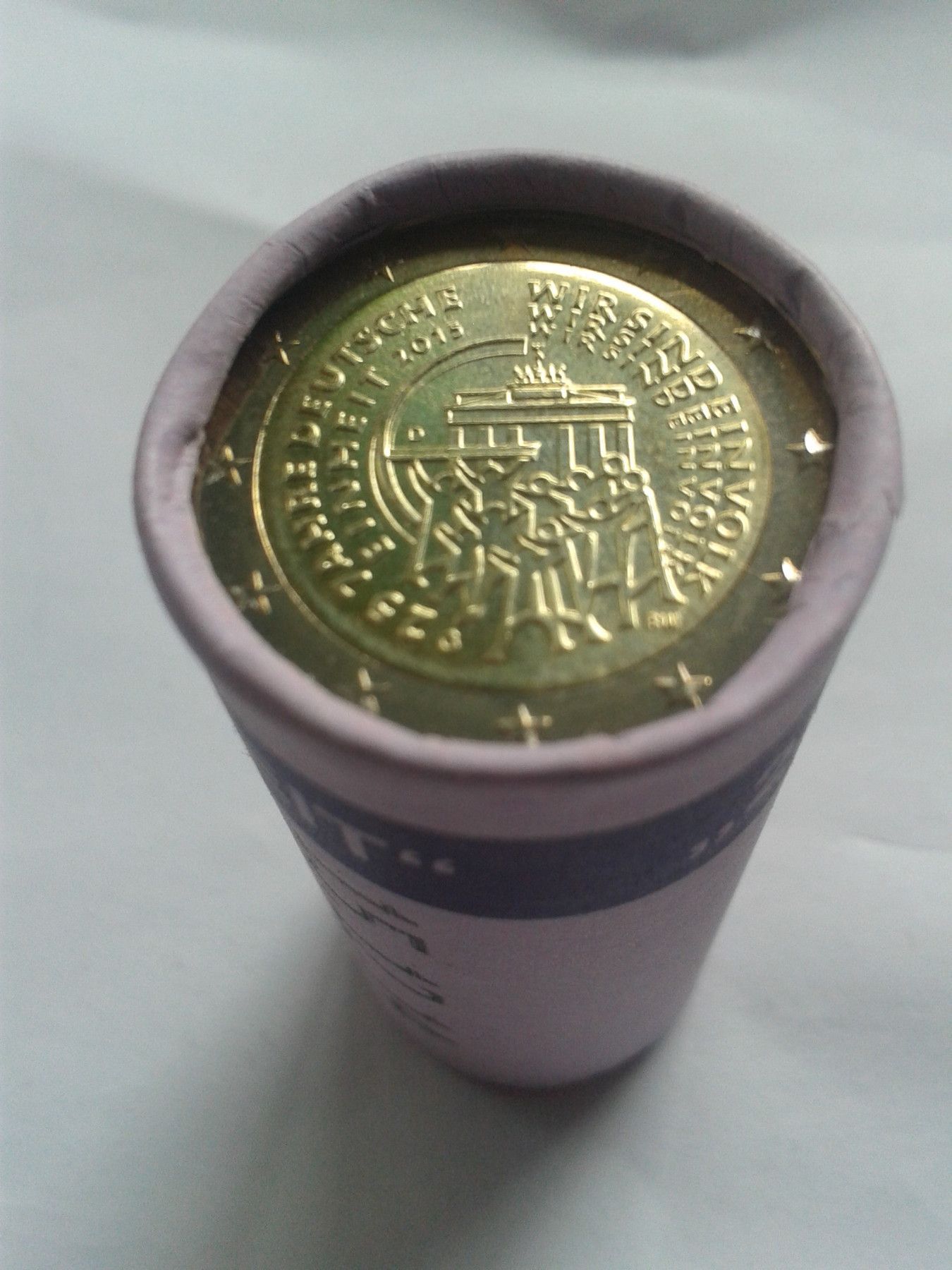 Sichtrolle 25 x 2 euro 2015 Deutsche Einheit Präge G (Karlsruhe) bankfrische Rolle
