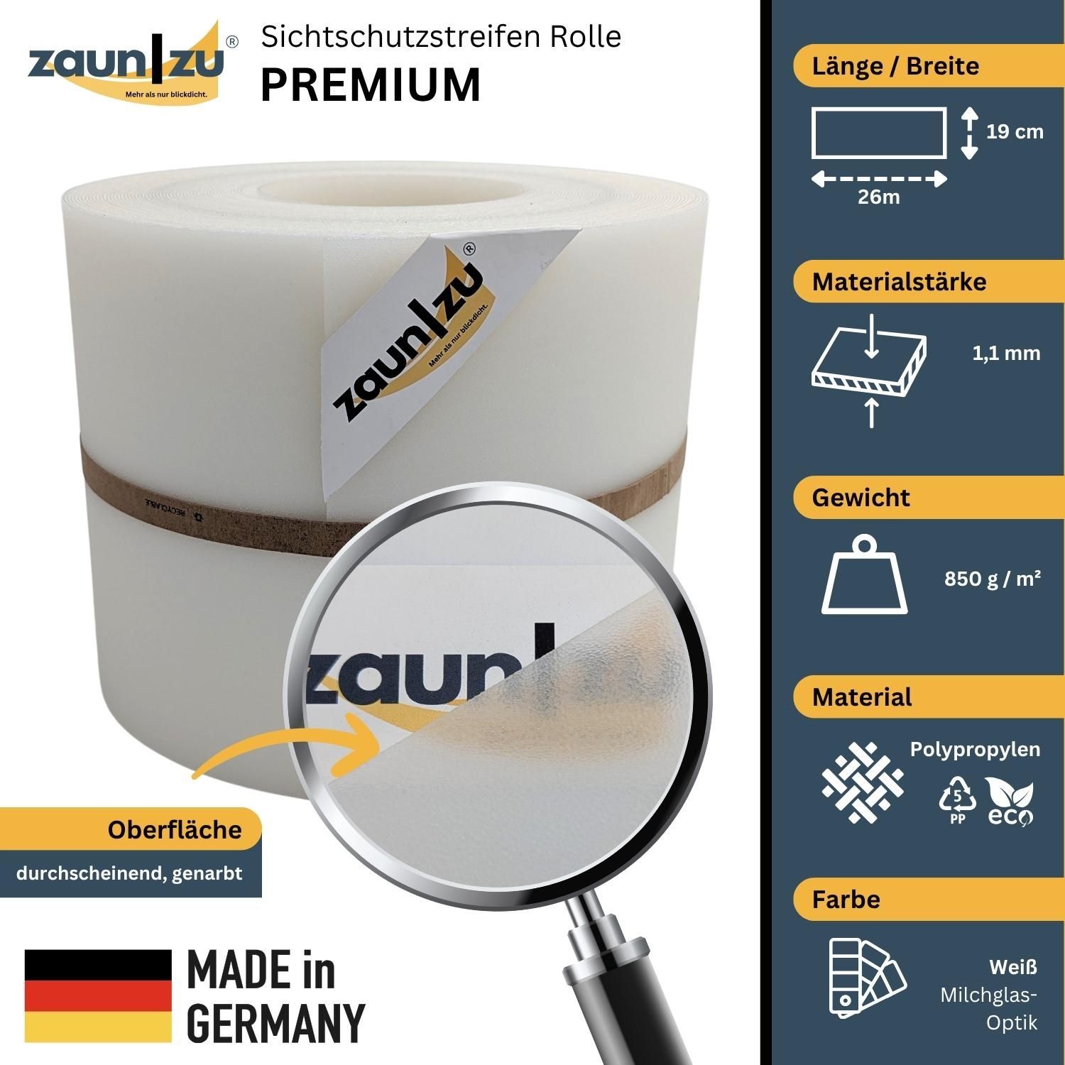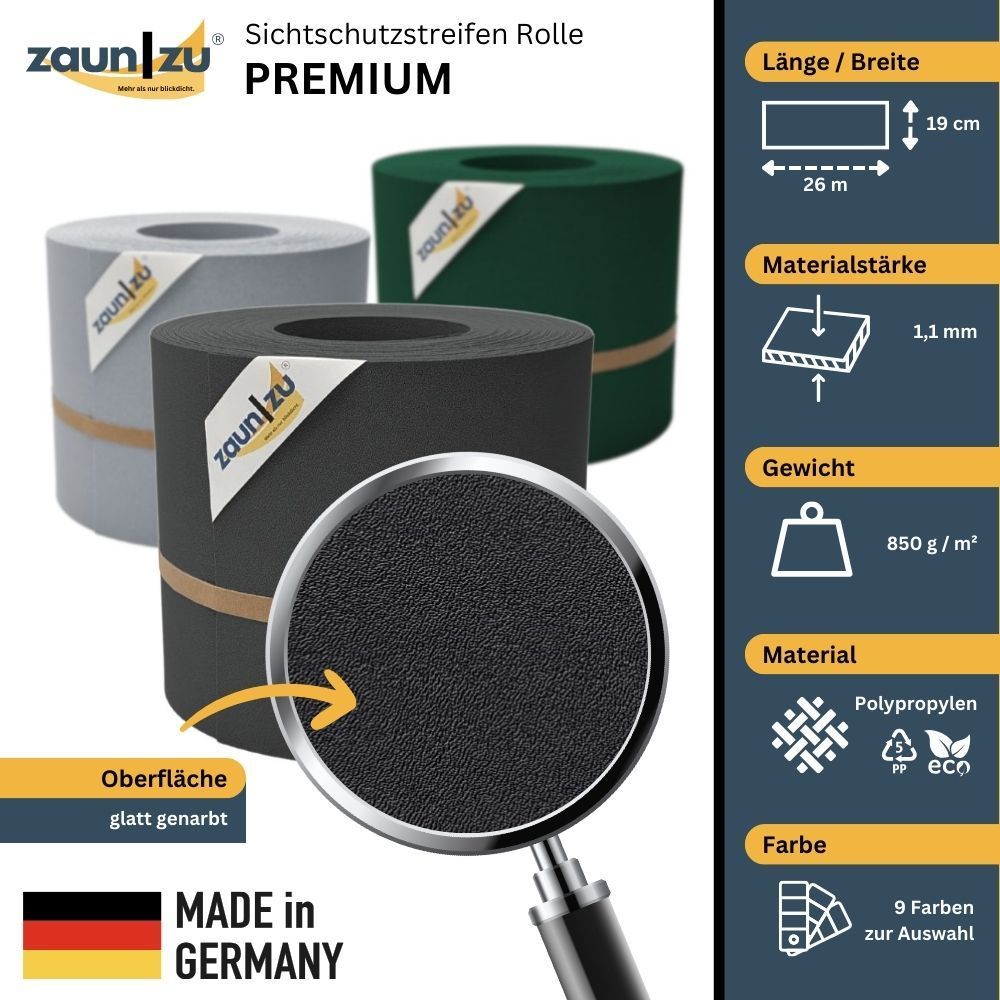 Sichtschutzstreifen zaun|zu Premium 26m Rolle PP Zaunblende für Doppelstabzaun