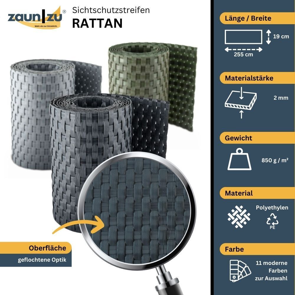 Sichtschutzstreifen zaun|zu RATTAN Einzelstreifen 2,55m für Doppelstabmattenzaun