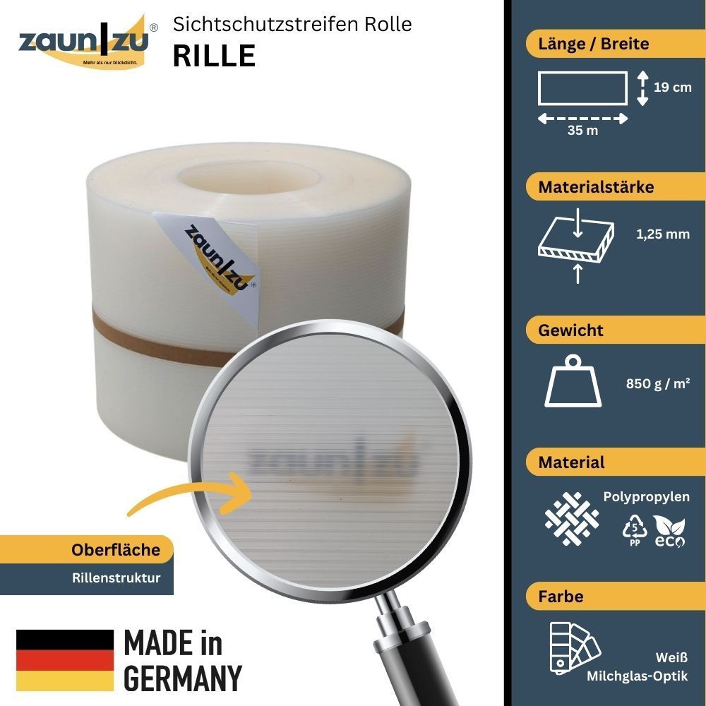 Sichtschutzstreifen zaun|zu RILLE 35m Rolle PP Zaunblende Doppelstabmattenzaun