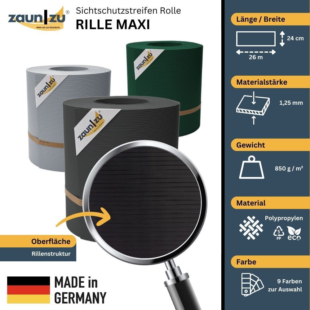 Sichtschutzstreifen zaun|zu RILLE MAXI 26m Rolle Blende für 24cm Gittermatten