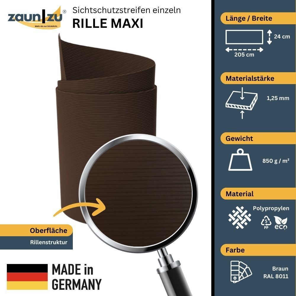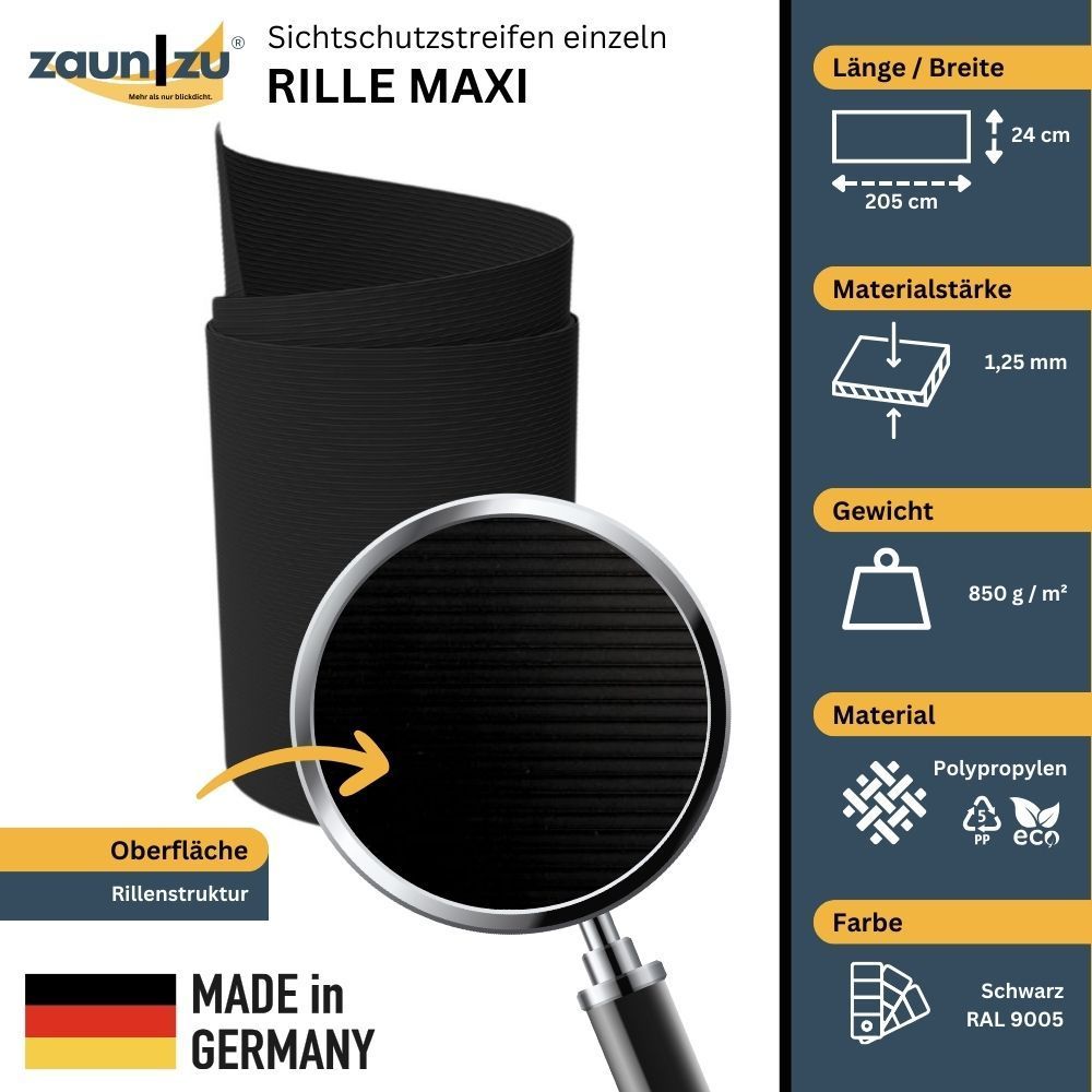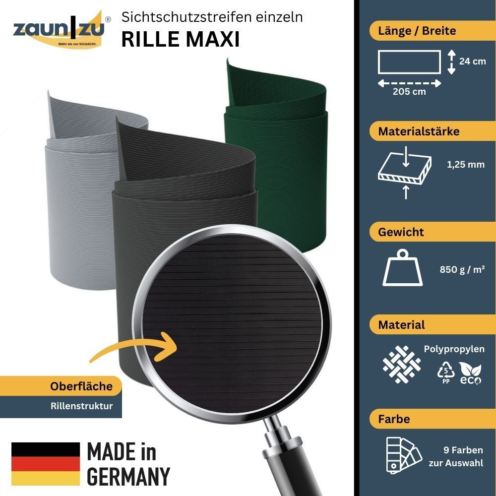 Sichtschutzstreifen zaun|zu RILLE MAXI Streifen 2,05m für 24cm Gittermatten
