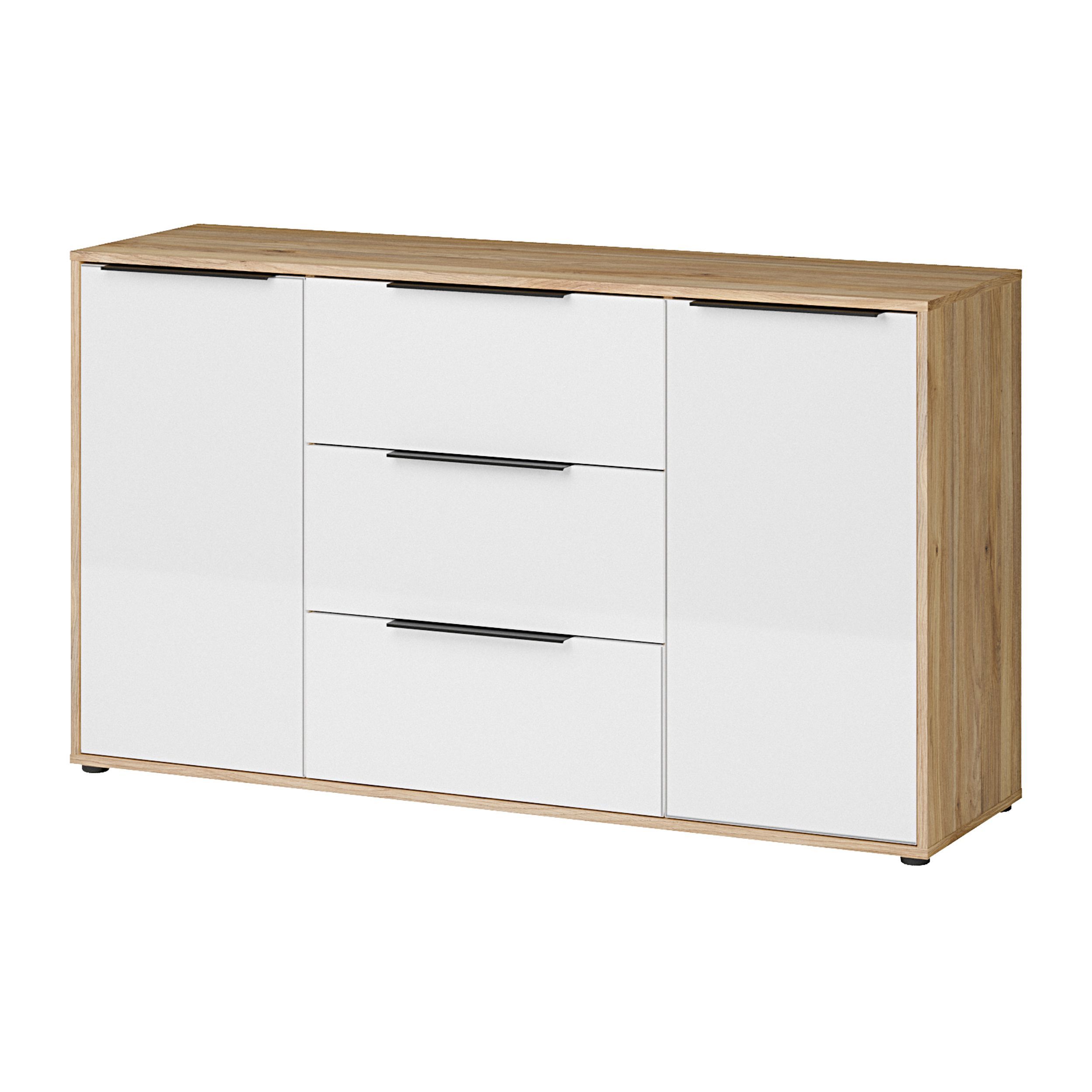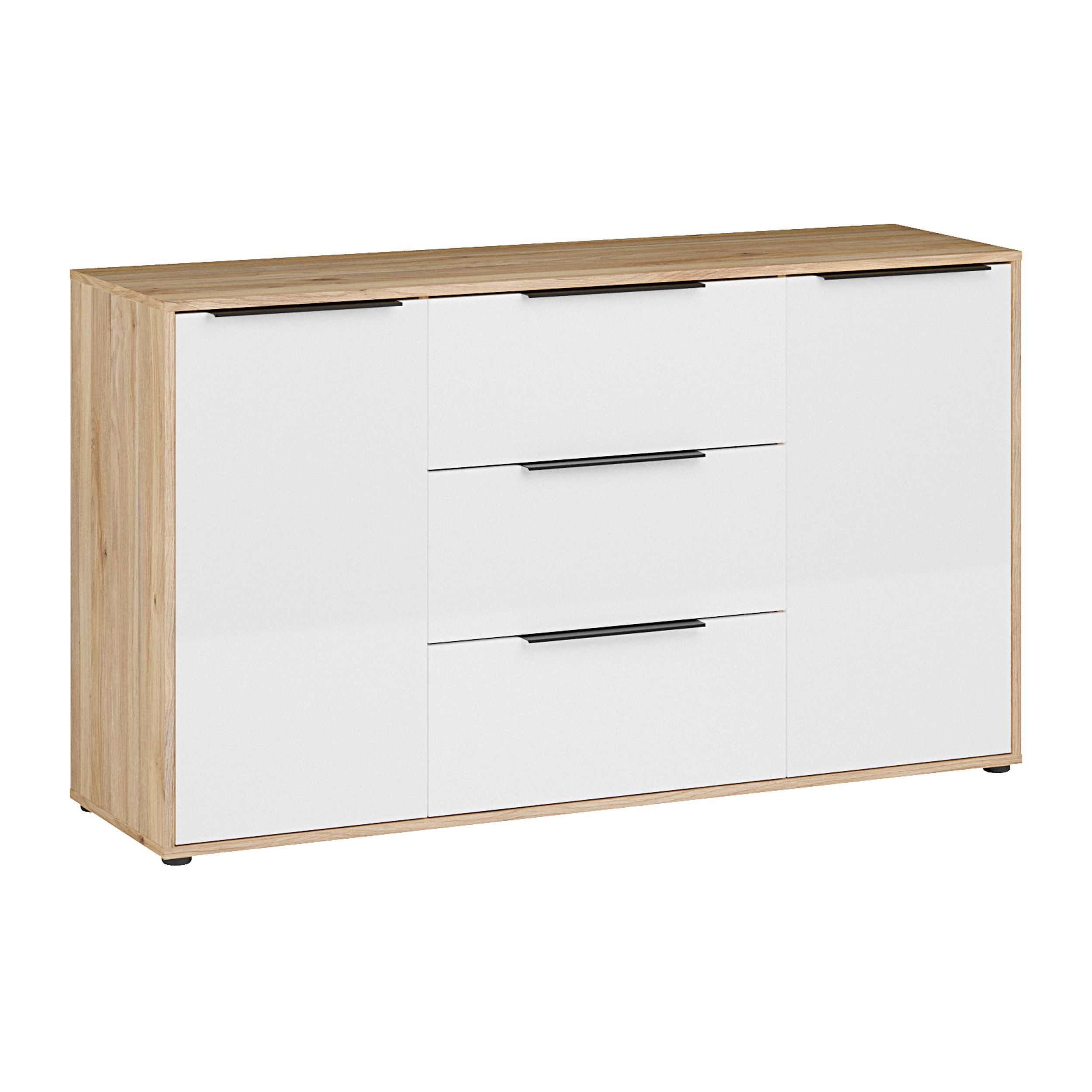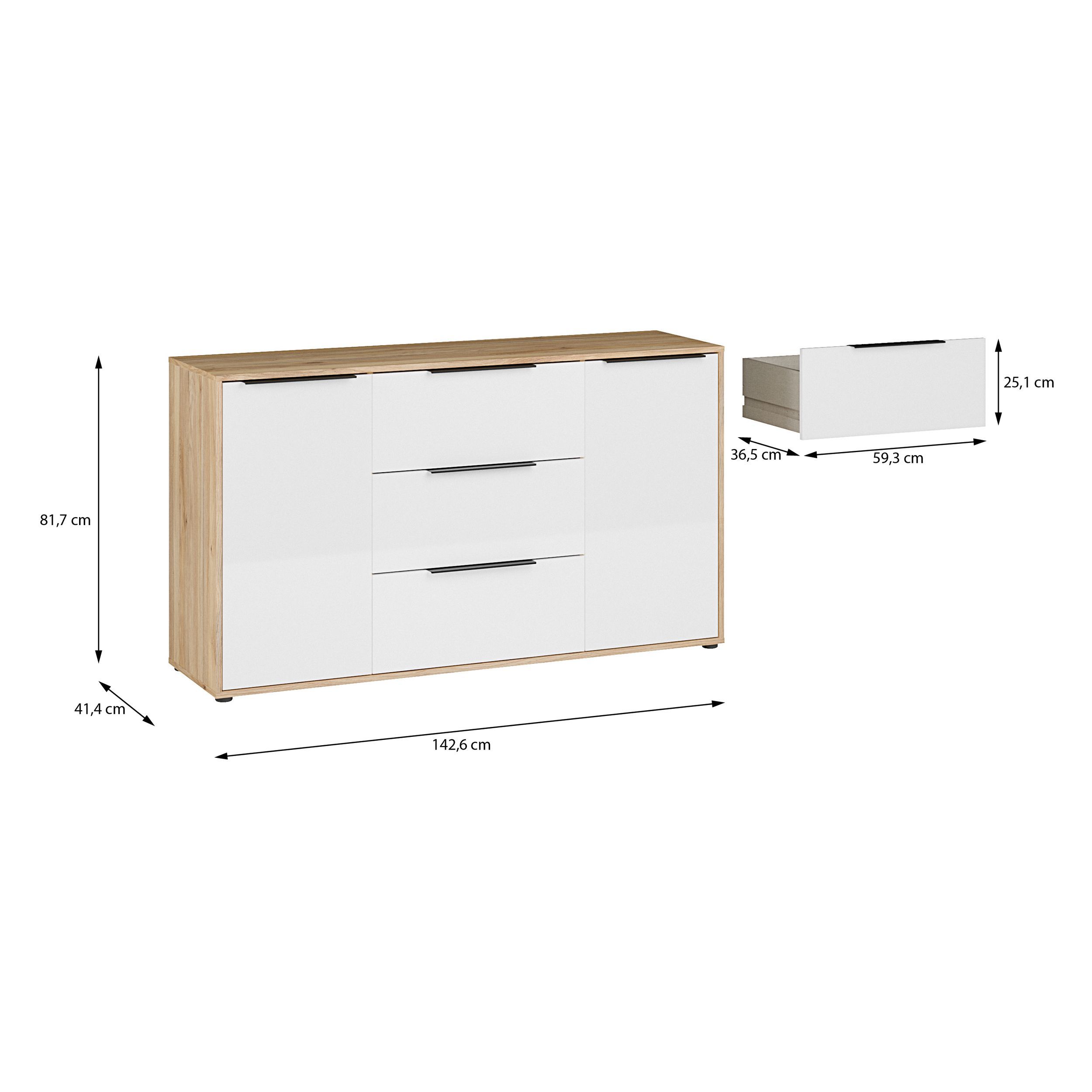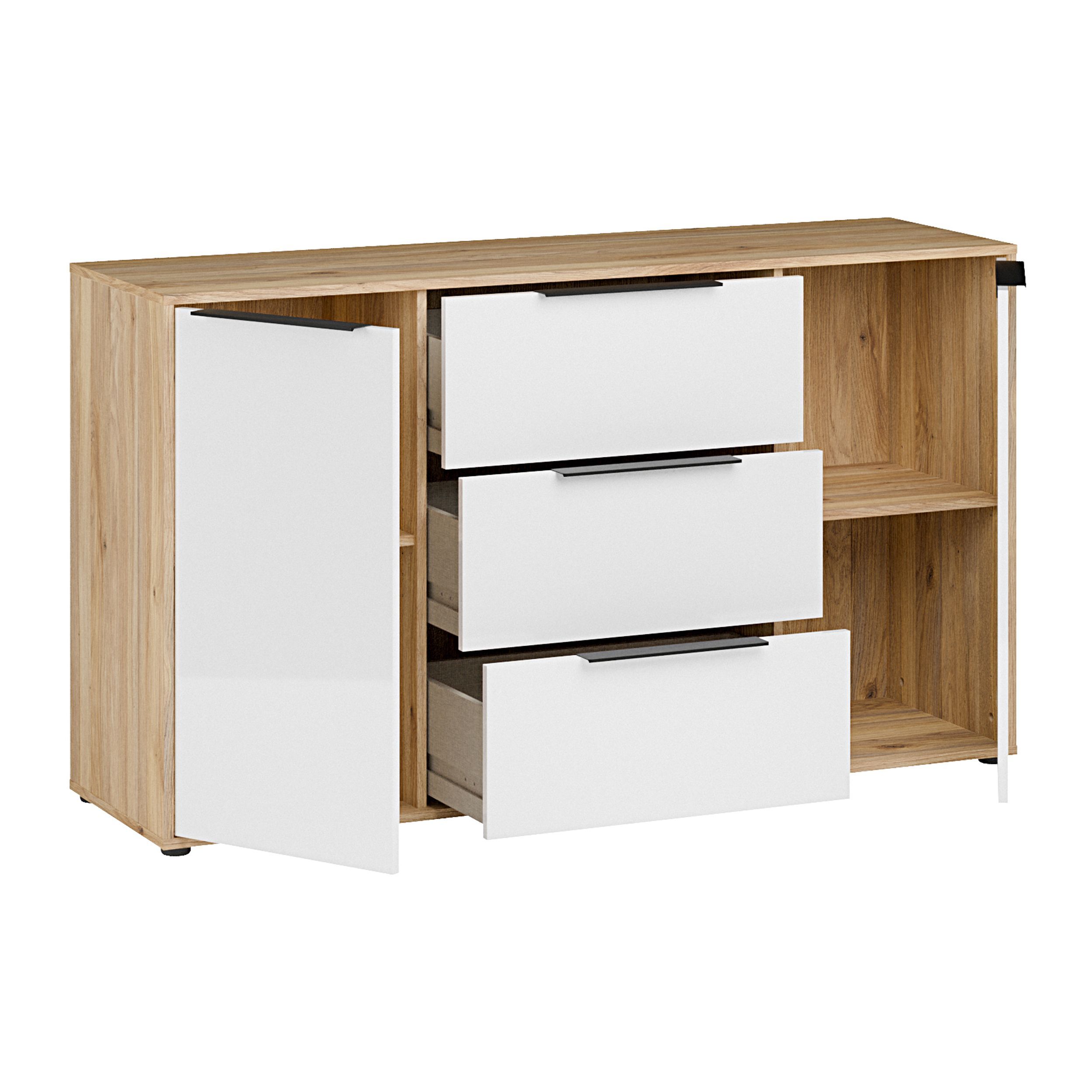 Sideboard 143 cm Kommode ORKNEY OKYK231-Q344 Eiche Mauvella/Weiß Hochglanz