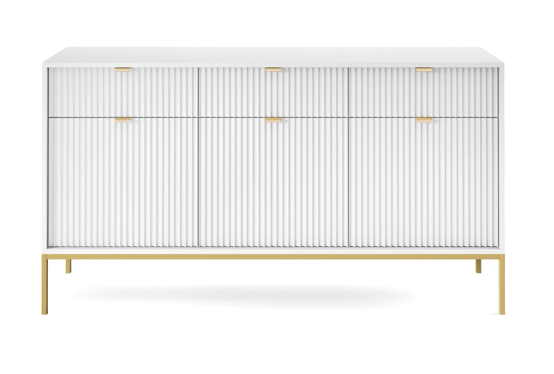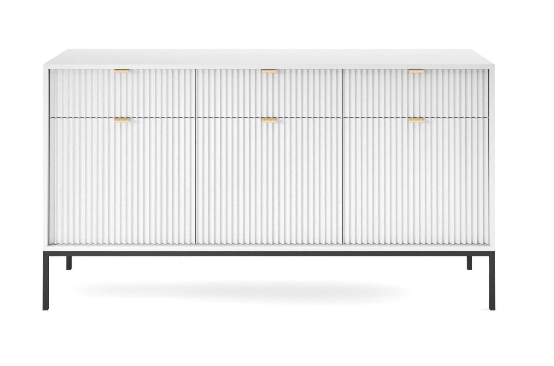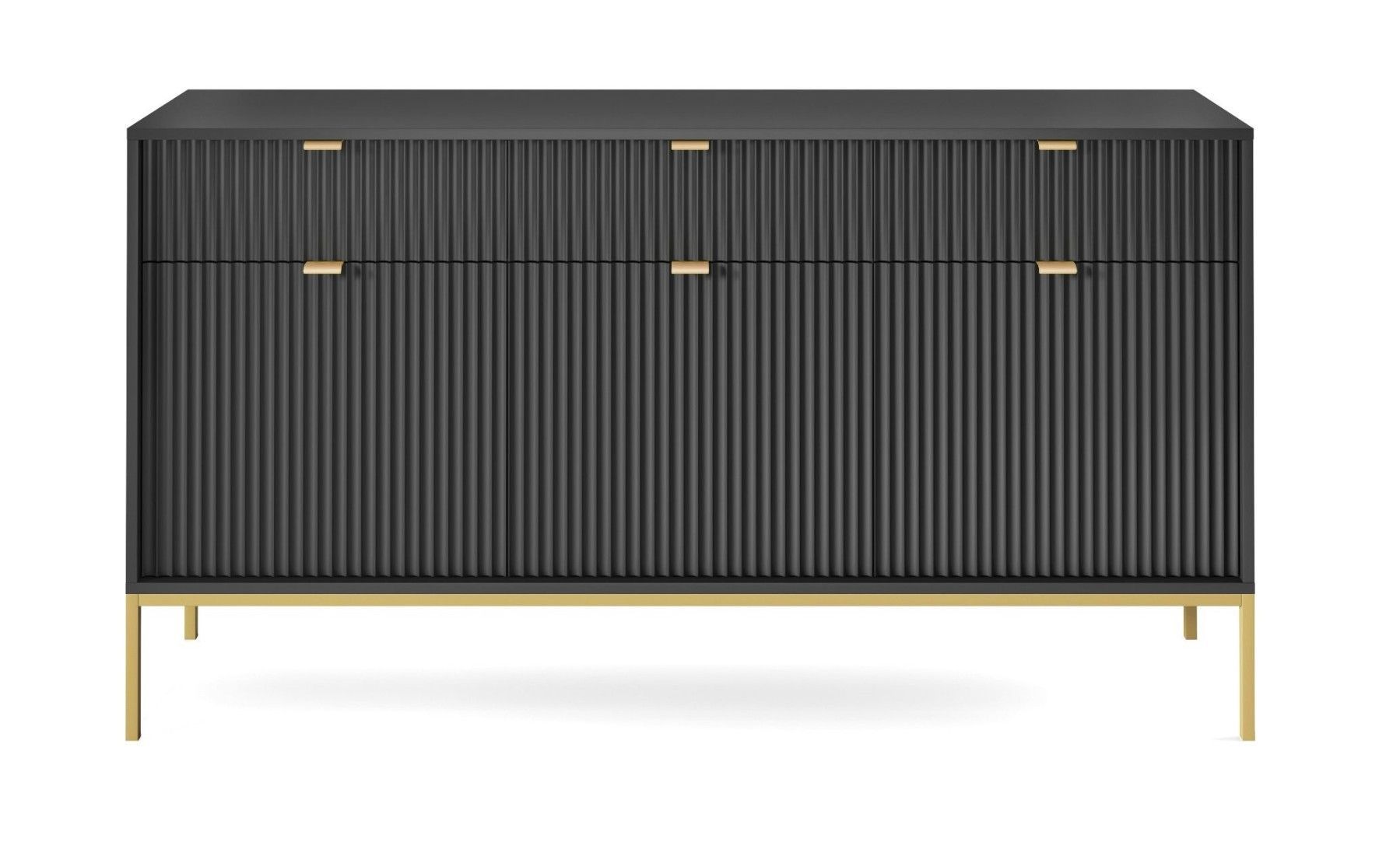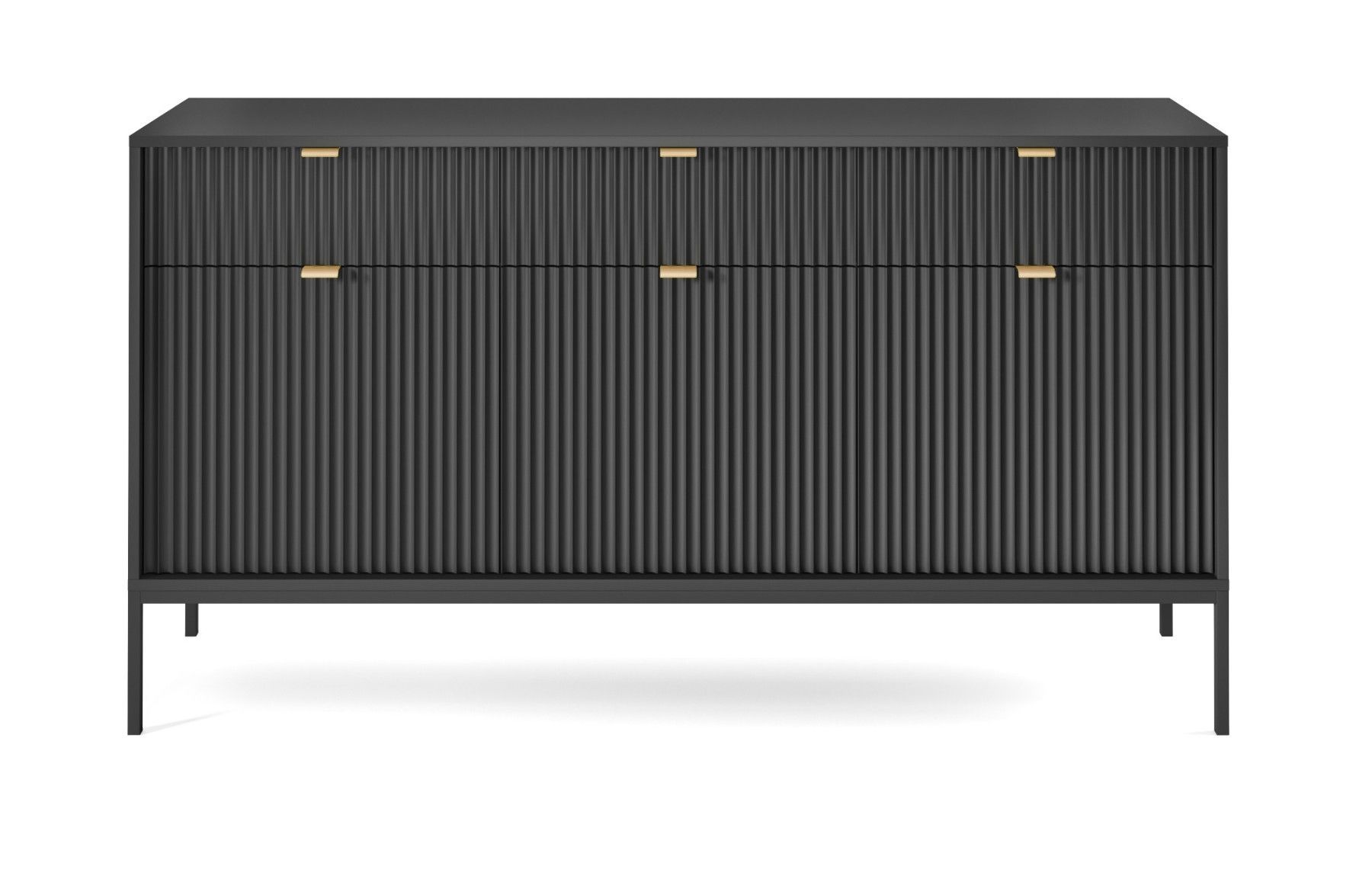 Sideboard 150 cm Galla, Dreitürige Kommode mit Schubladen - geriffelten Fronten