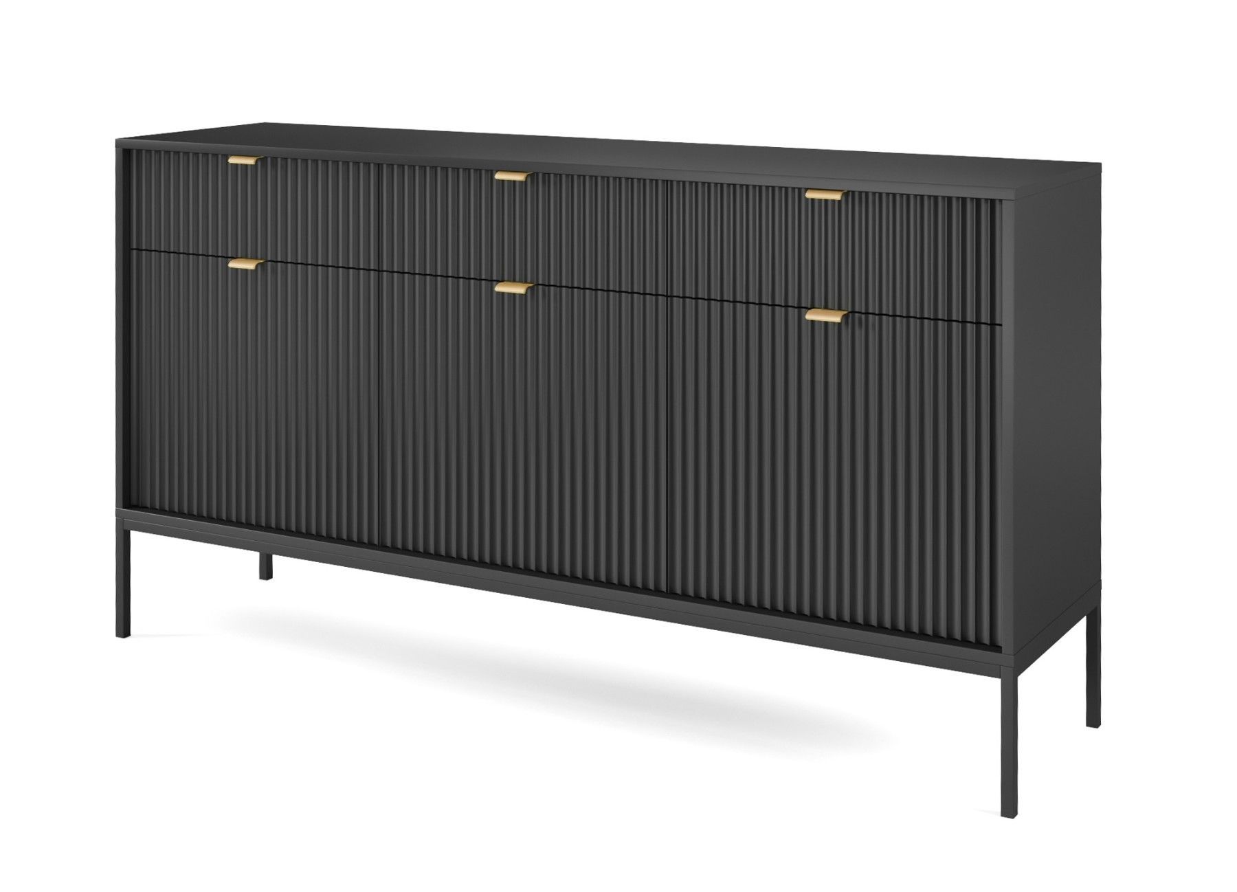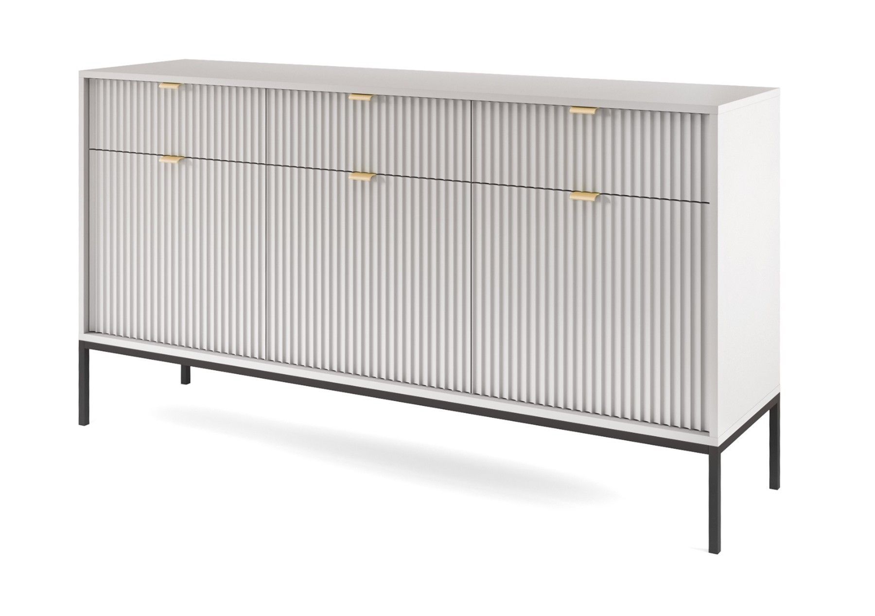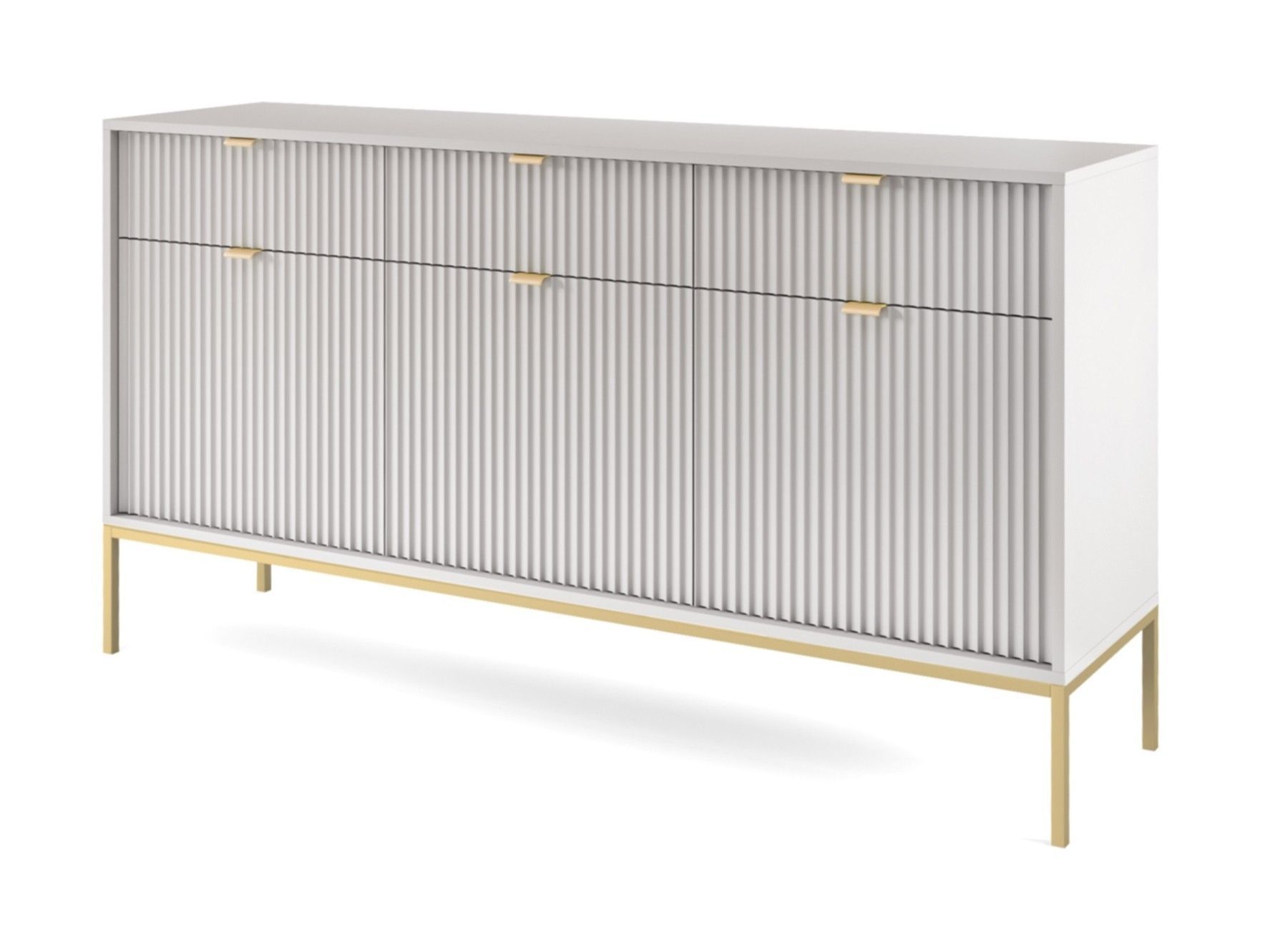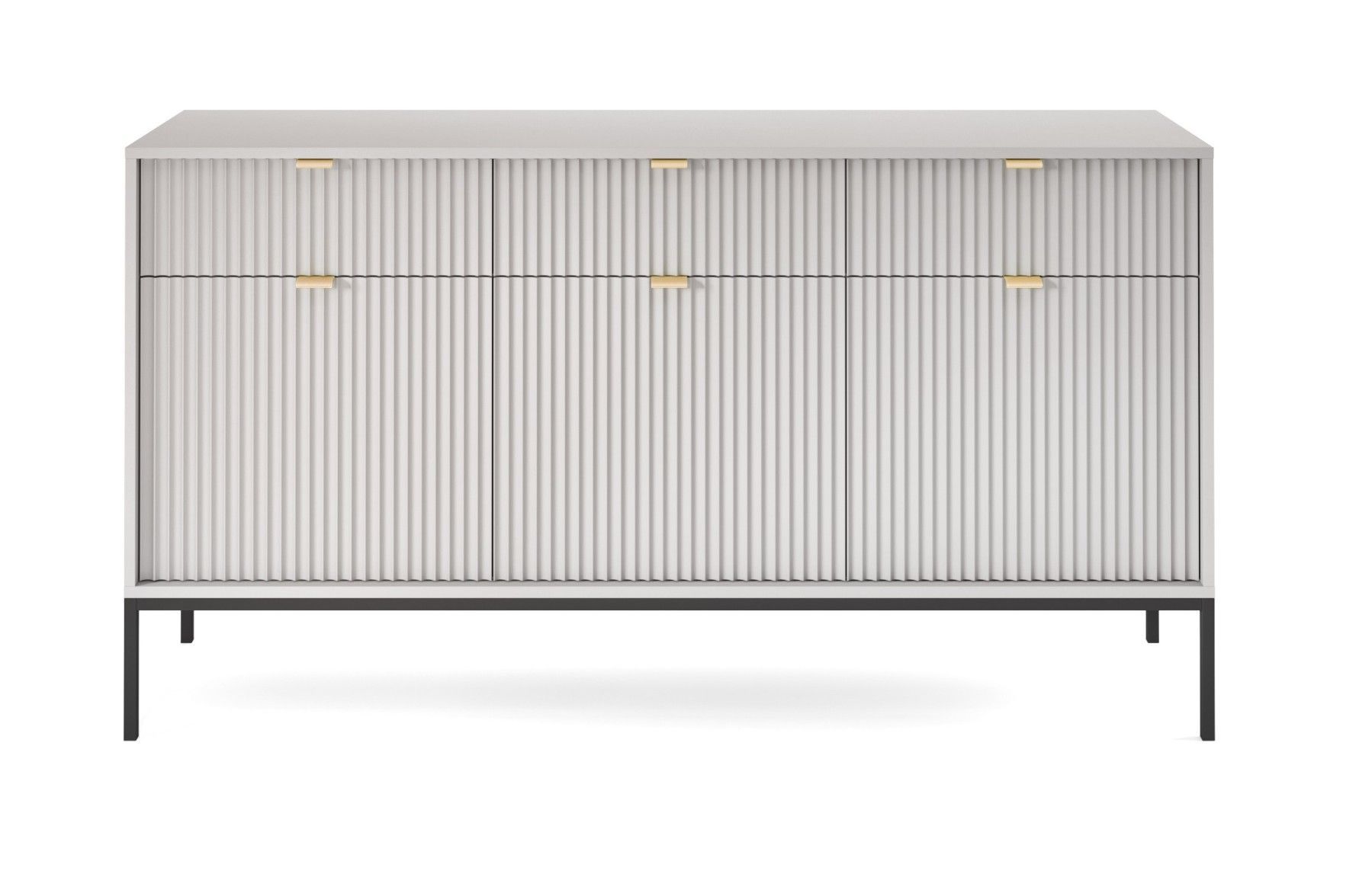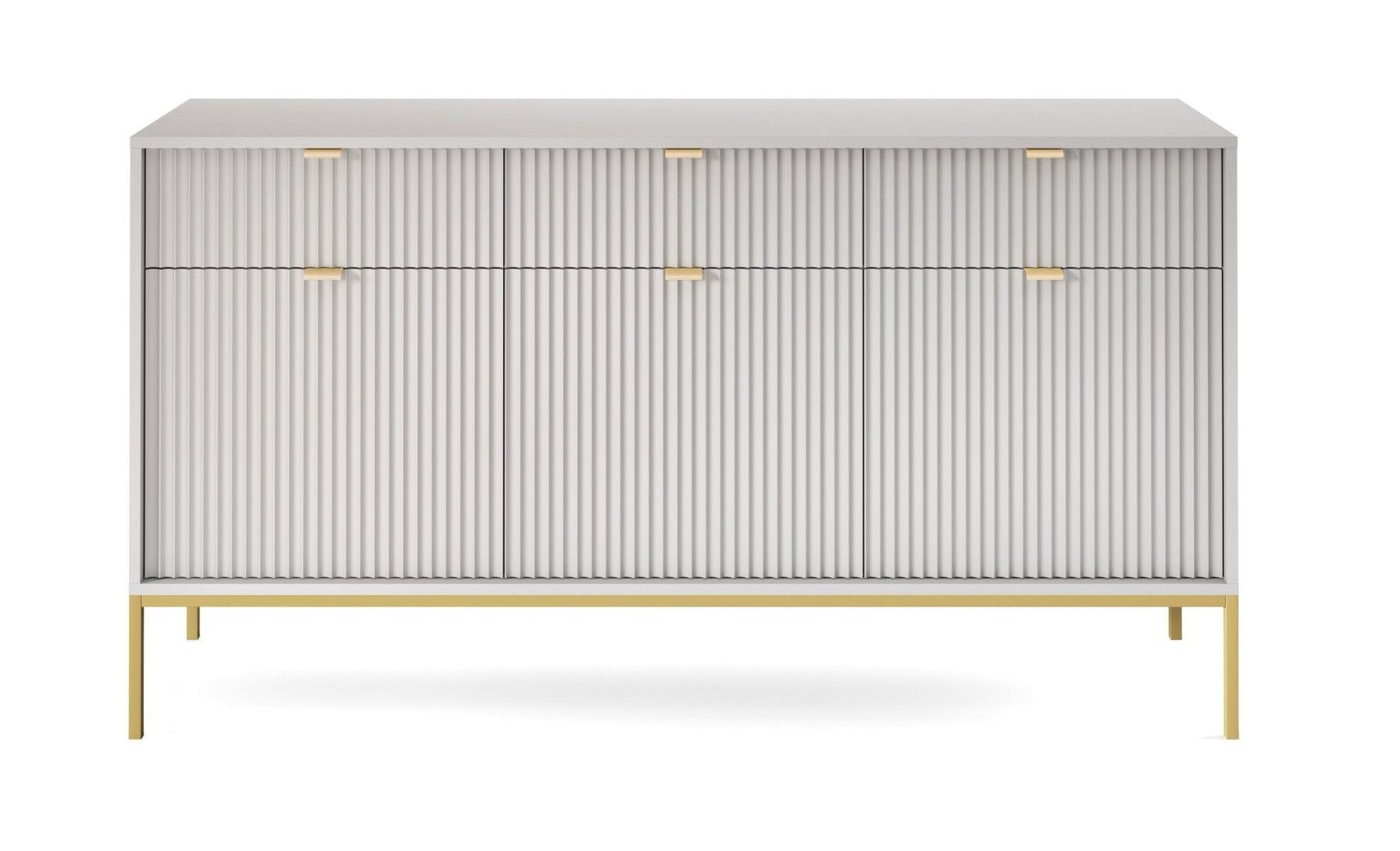 Sideboard 150 cm Galla, Dreitürige Kommode mit Schubladen - geriffelten Fronten