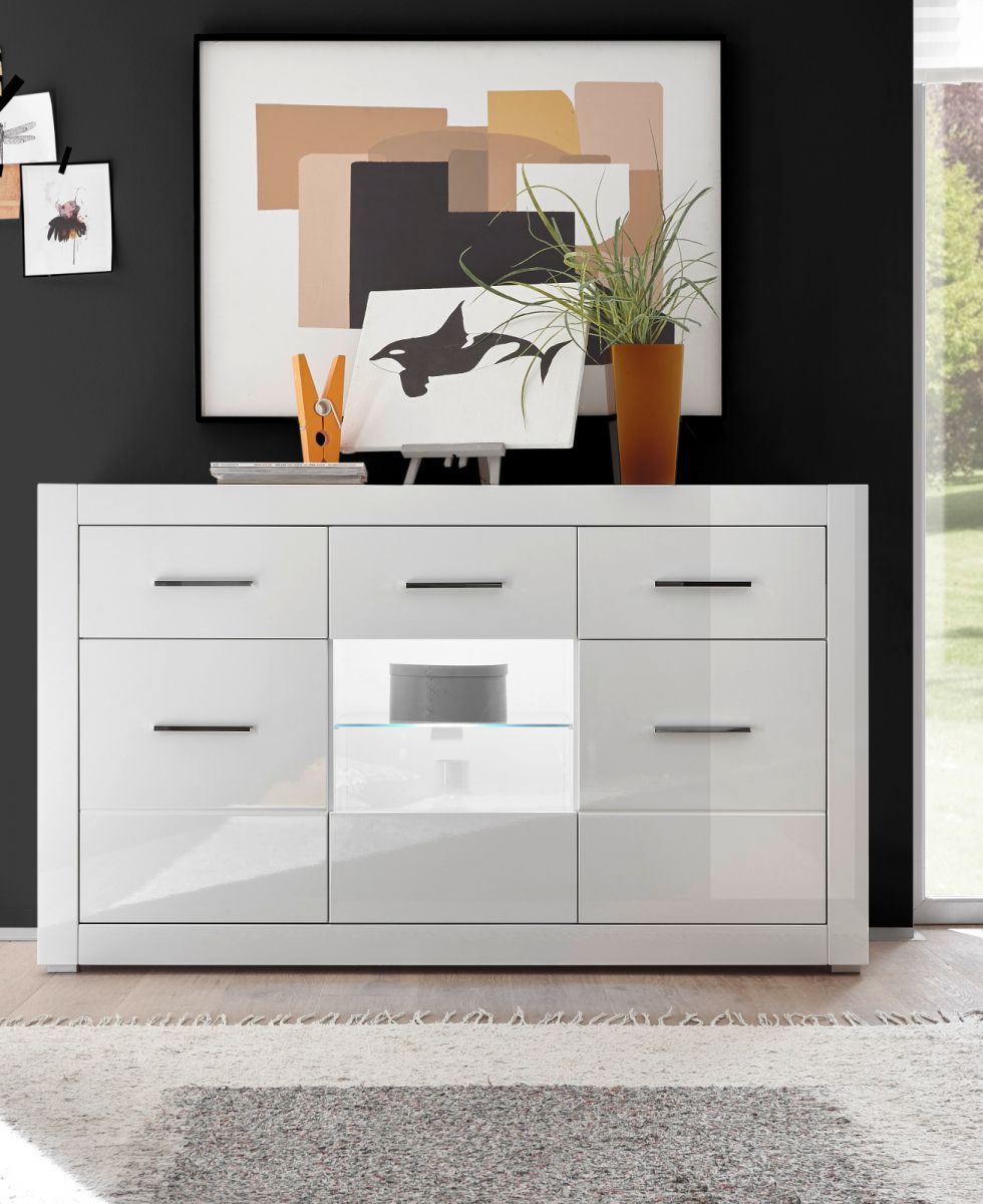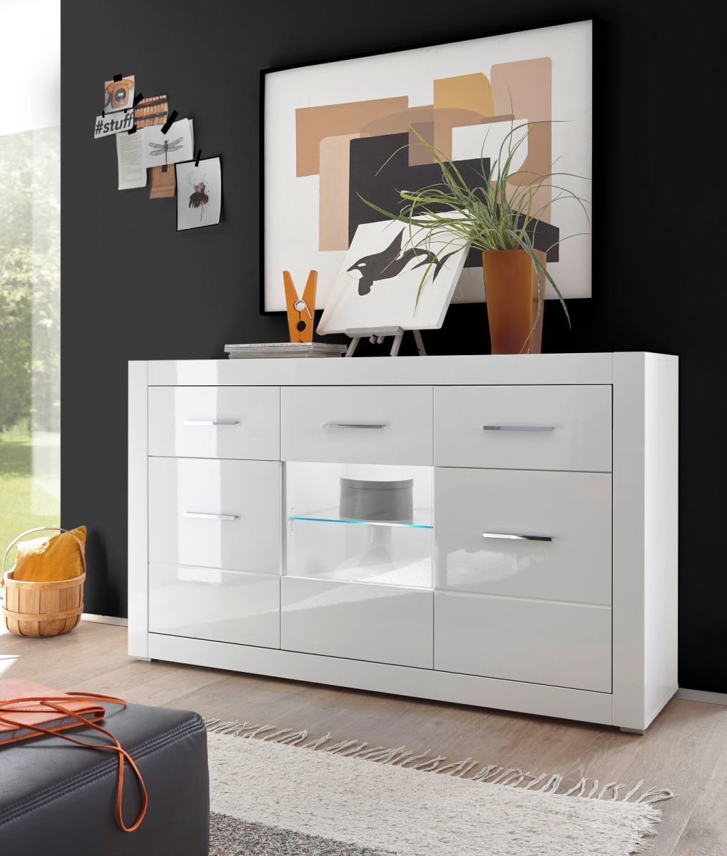 Sideboard Anrichte weiß Hochglanz Kommode 164 cm Wohn Esszimmer Carrara