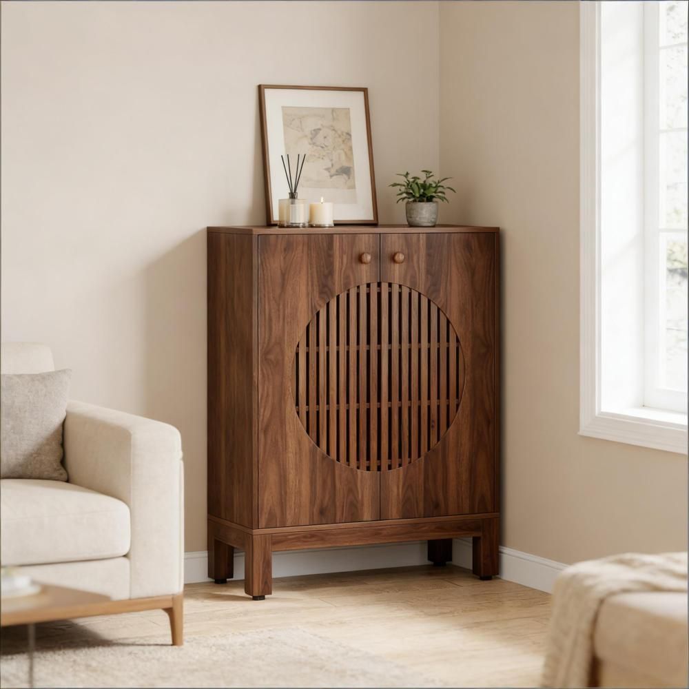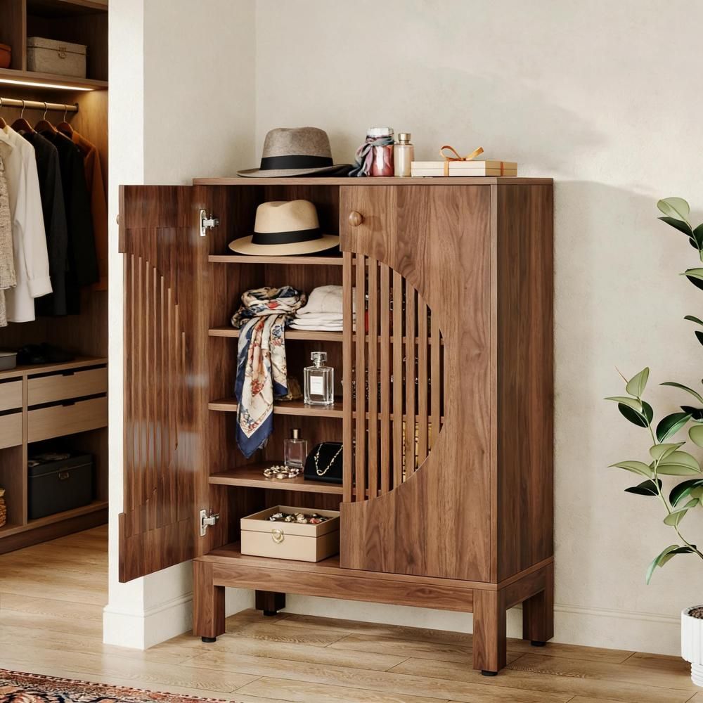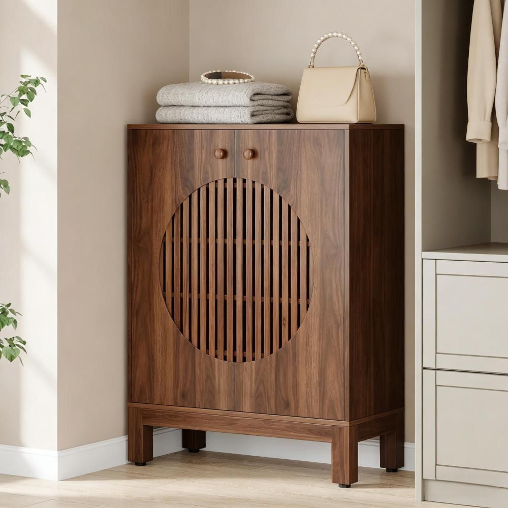Brauner Schuhschrank aus Holzwerkstoff mit großzügigem Stauraum für Schuhe und Alltagsgegenstände. Als Einzelprodukt eignet er sich ideal für Flur, Schlafzimmer oder Ankleide.