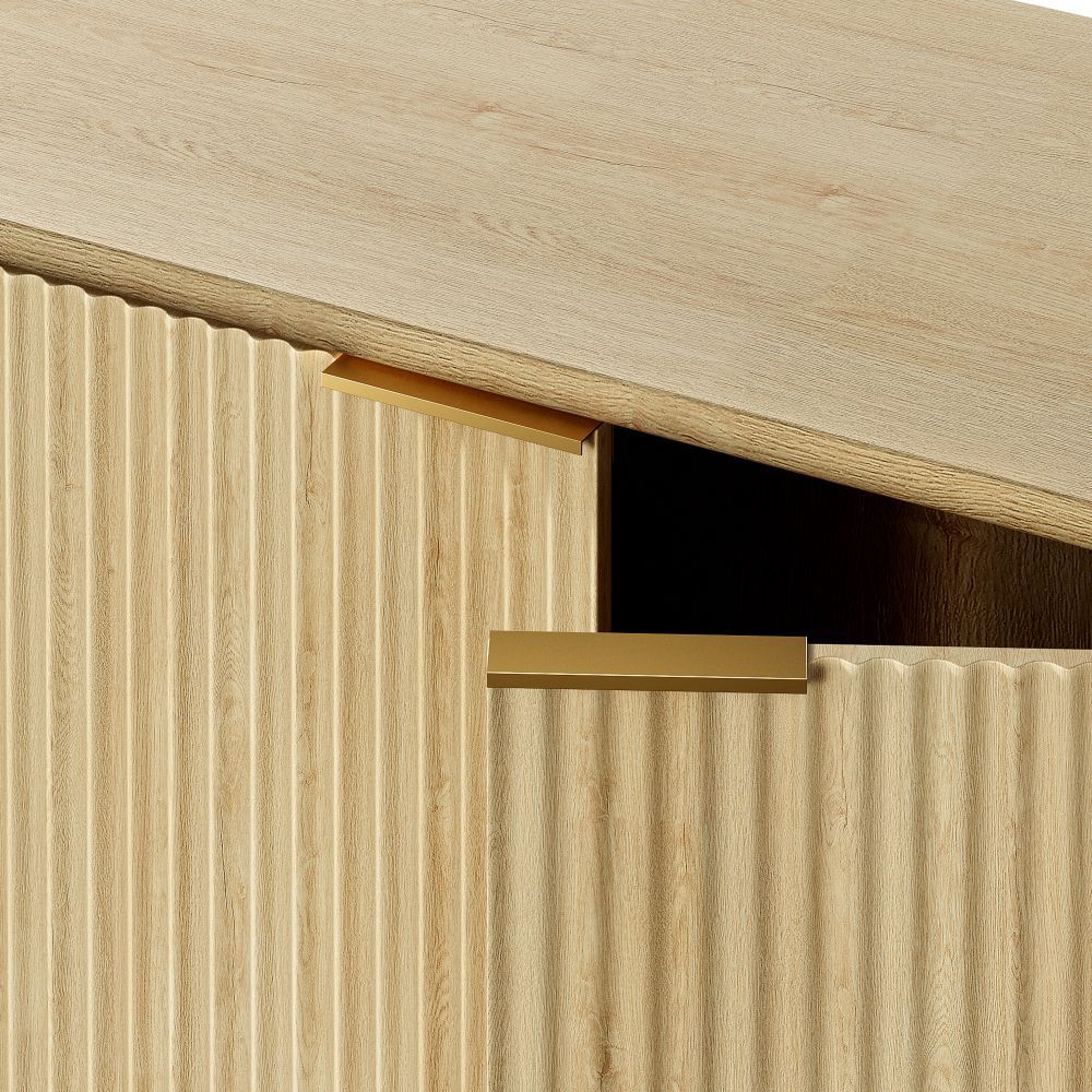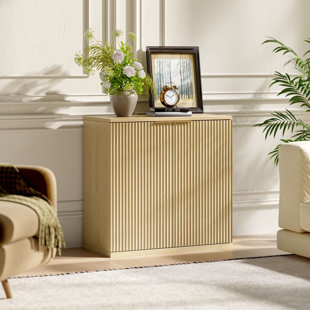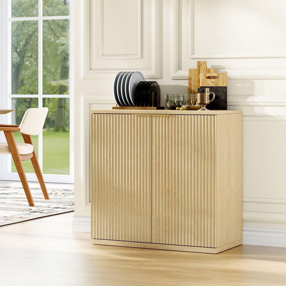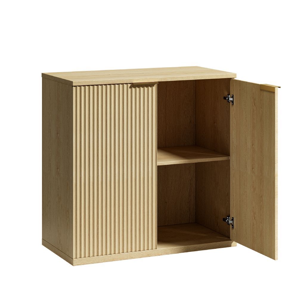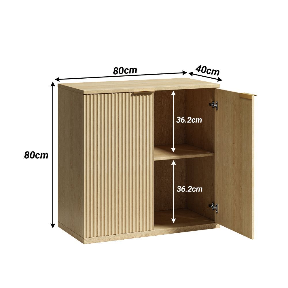Moderner Aufbewahrungsschrank in Blau aus MDF mit Faltenfront und Metallgriff. Ideal als multifunktionales Sideboard für Wohnzimmer oder Schlafzimmer. Maße aufgebaut: 80 x 40 x 80 cm. Mit 1–2 Ablagen und praktischem Stauraum. Paketmaß: 90 x 46,5 x 18,5 cm, Gewicht: 27,6 kg.