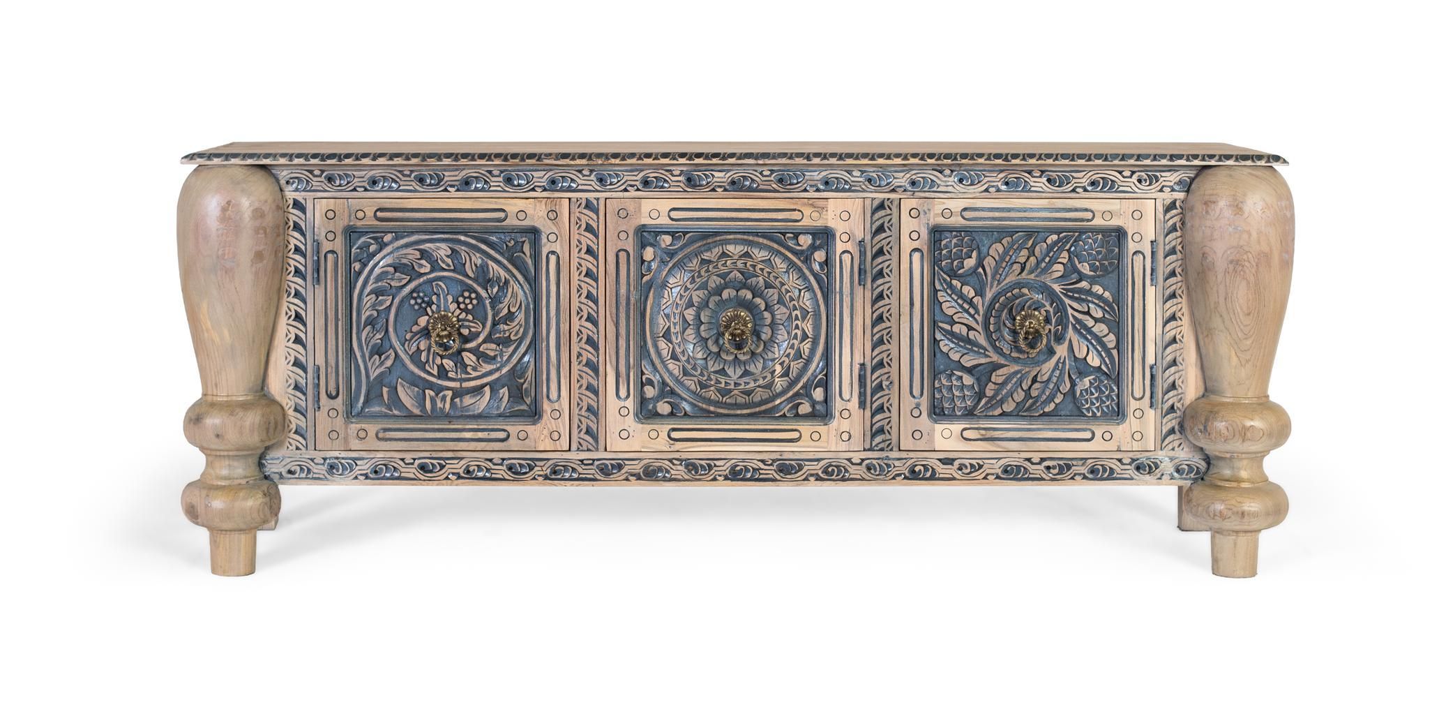 Sideboard aus massivem Teakholz mit Schnitzereien und stabilen Beinen-2293