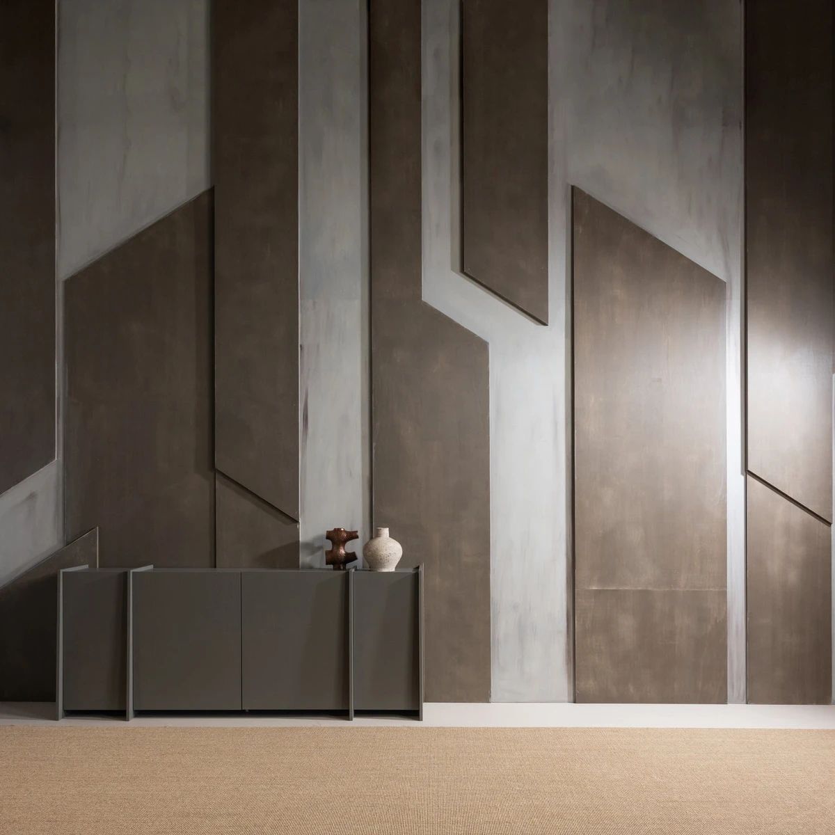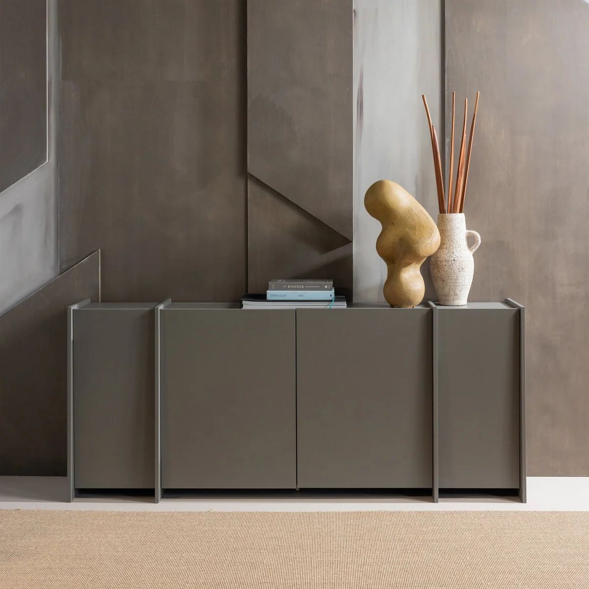 Sideboard Brock - Aschenfurnier warmes Grau, 200 cm (Gr. 200x44x85 cm)