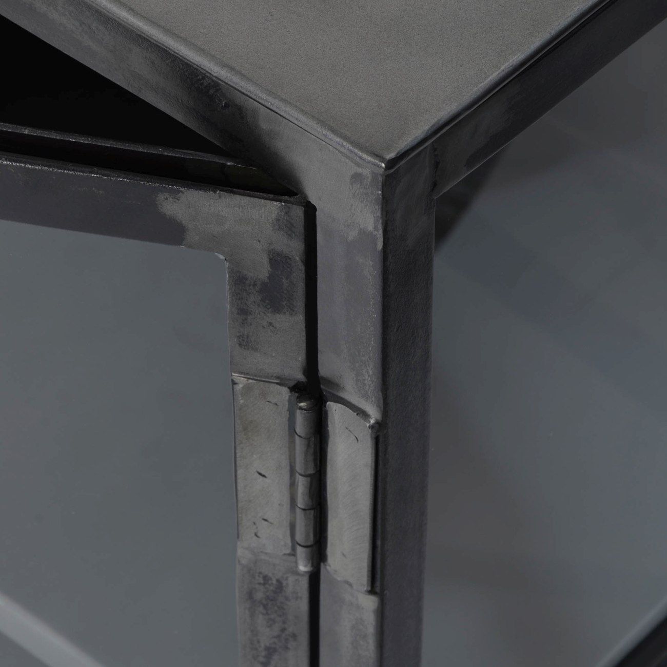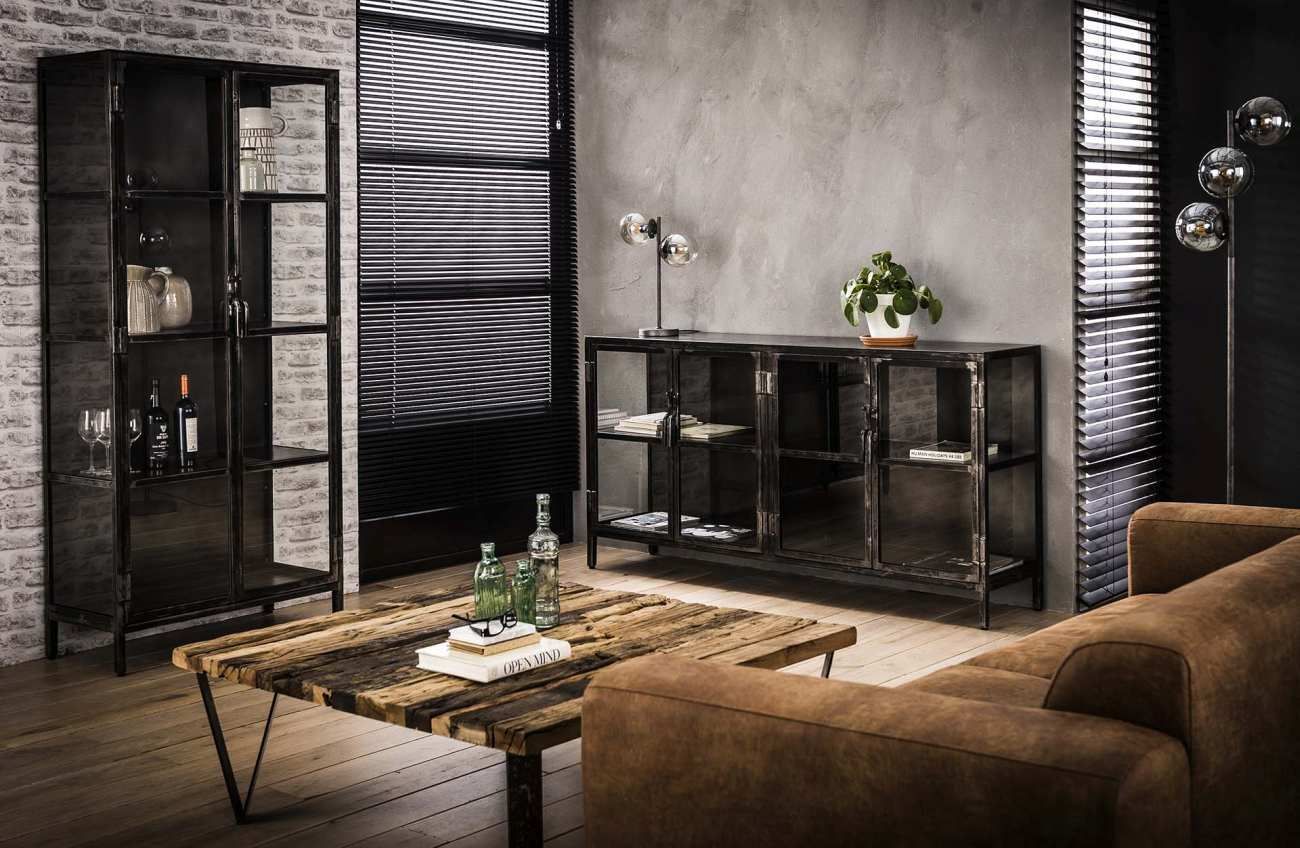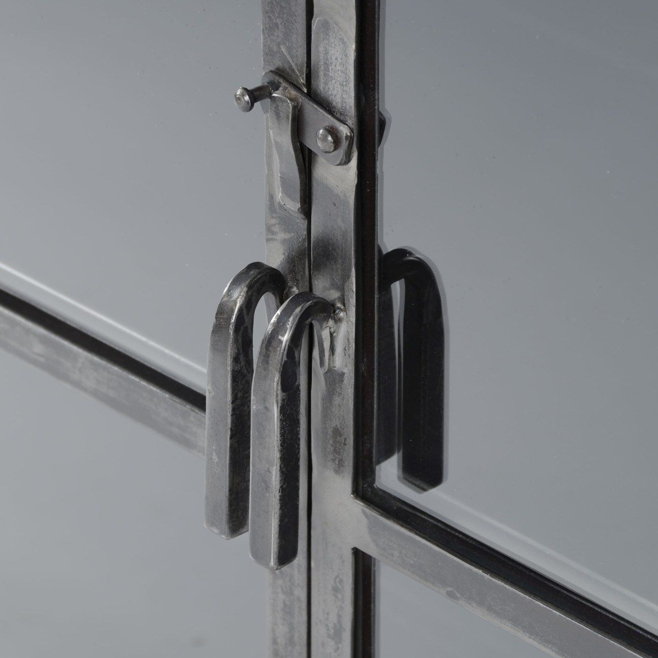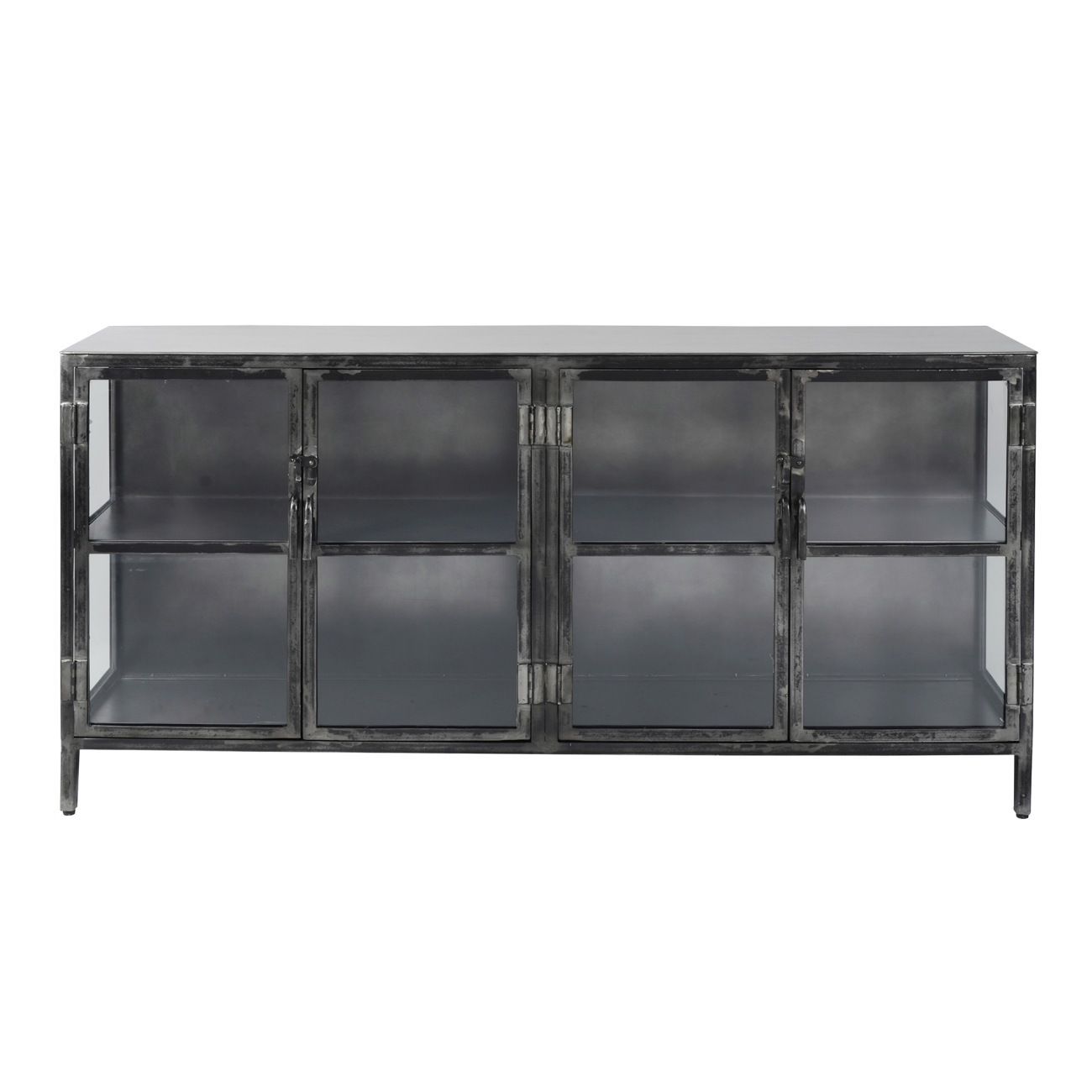 Sideboard Cheol Metall geschliffen, Industrial Design mit Glastüren, Dunkelgrau,
