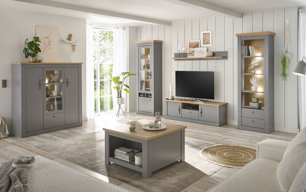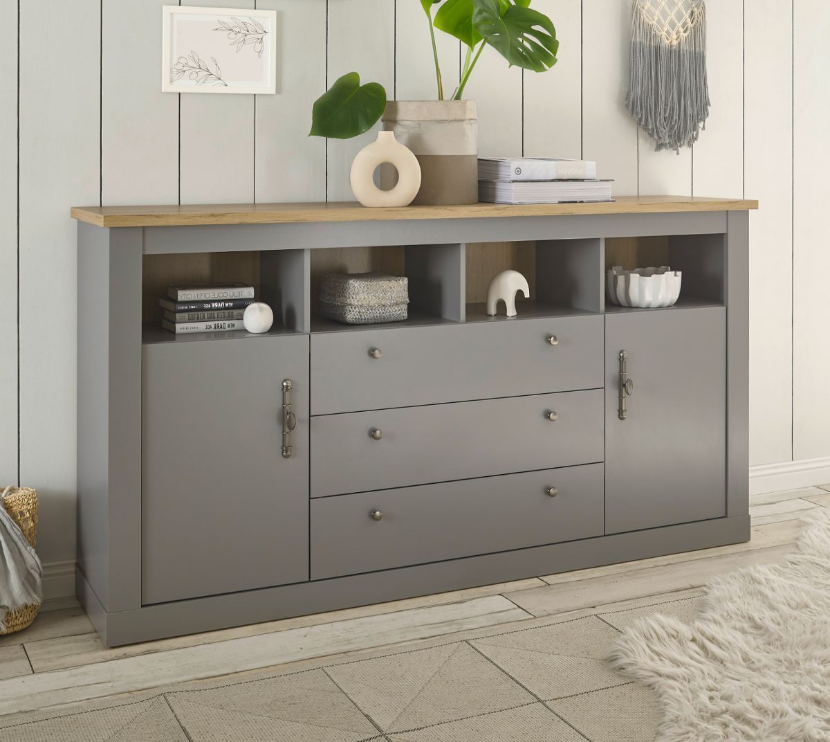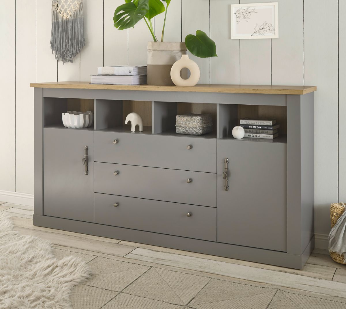Sideboard grau und Eiche Kommode Anrichte Landhaus Wohn Esszimmer Rideau 198 cm