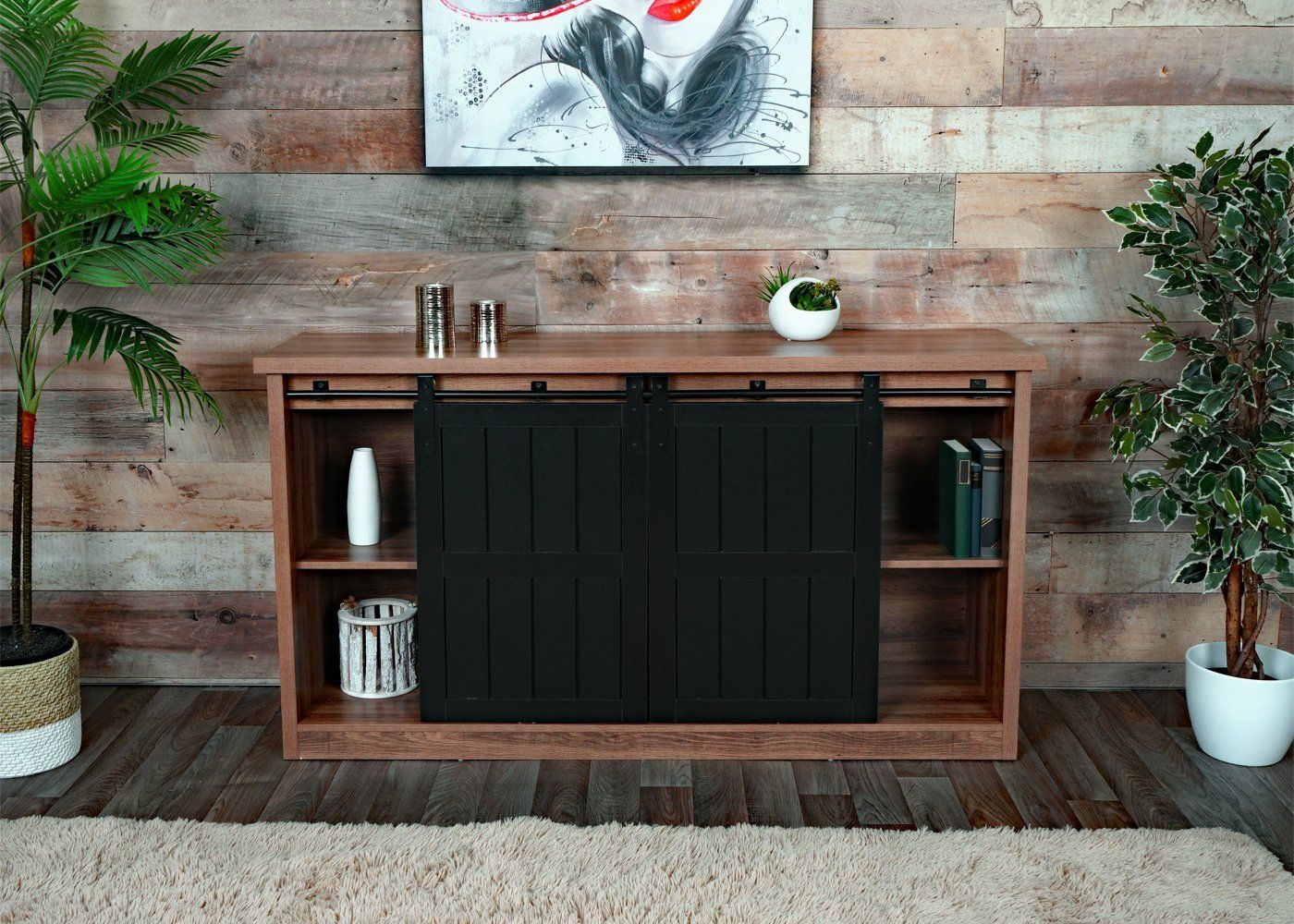 Mendler Sideboard HWC-K75, Highboard Regal Schrank, Schiebetüre 7 Fächer, Holz-Optik