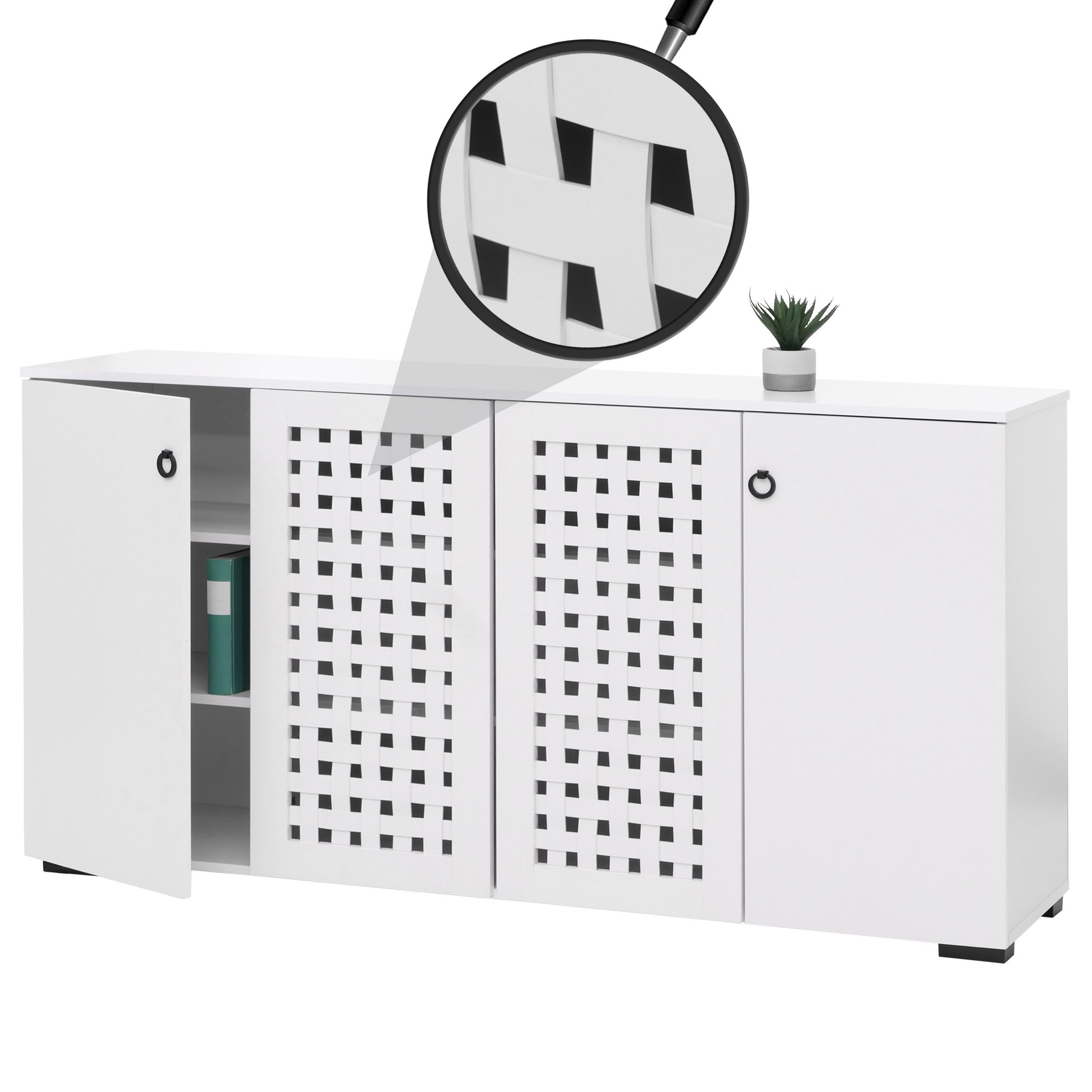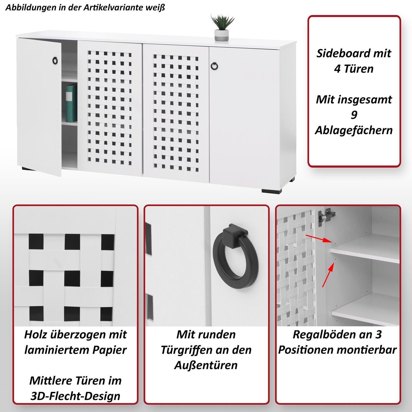 Mendler Sideboard HWC-N87, Kommode Schrank Anrichte, 3D-Flecht-Design 4 Türen 9 Staufächer