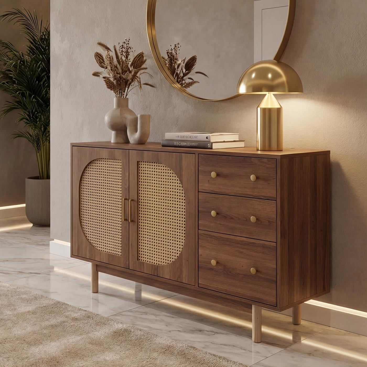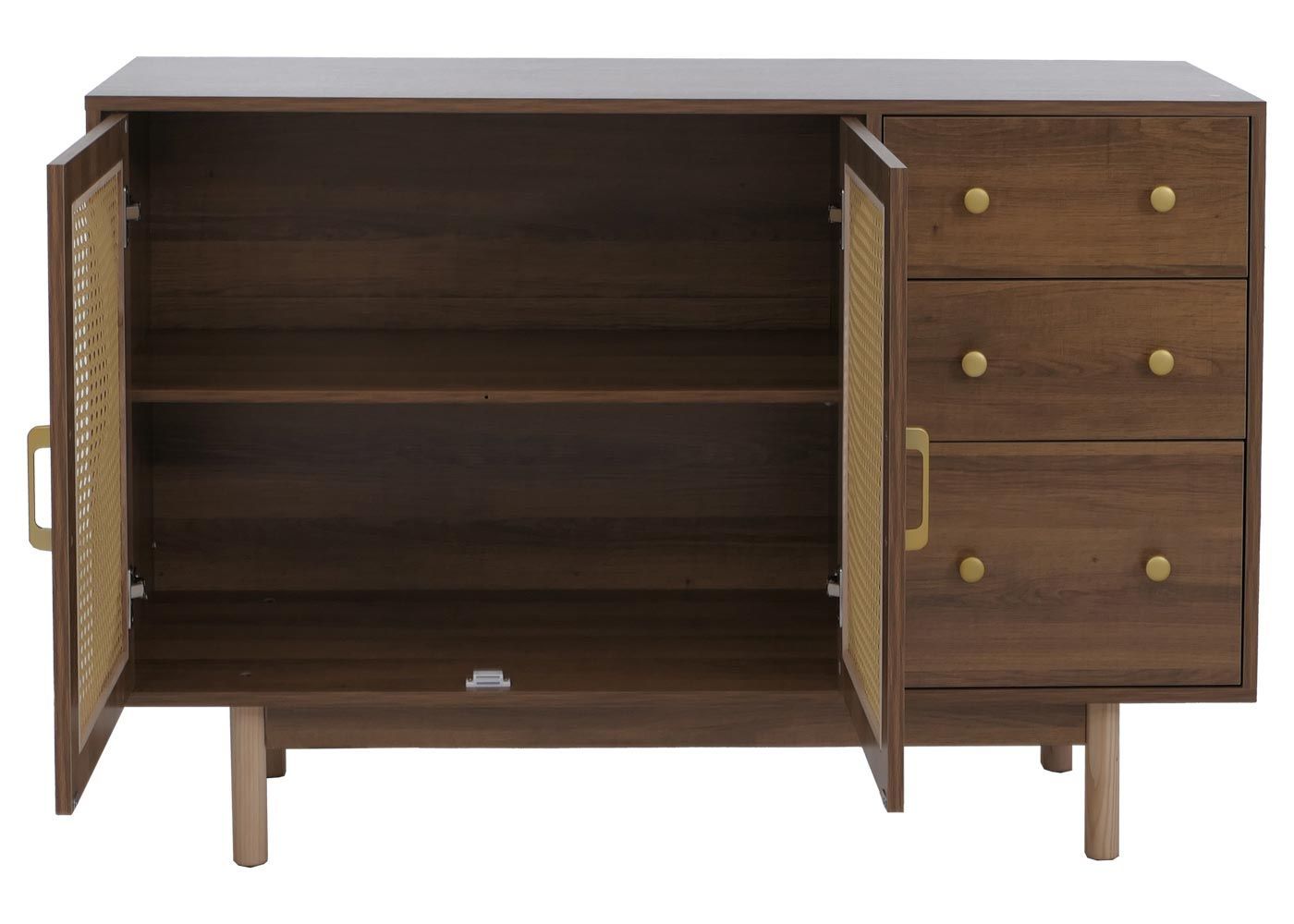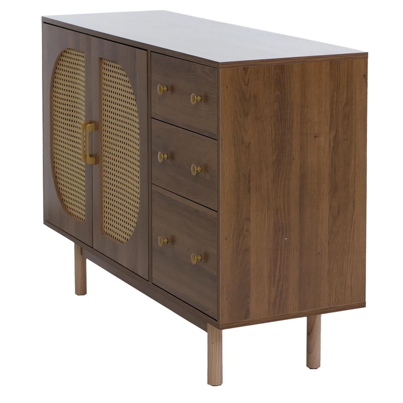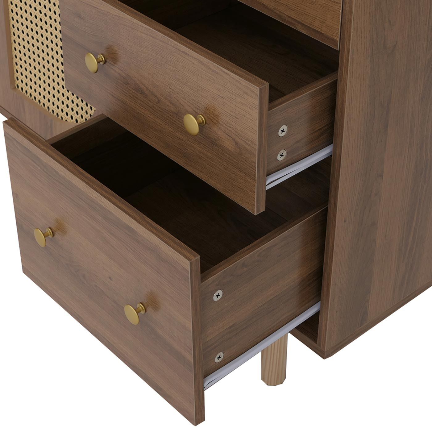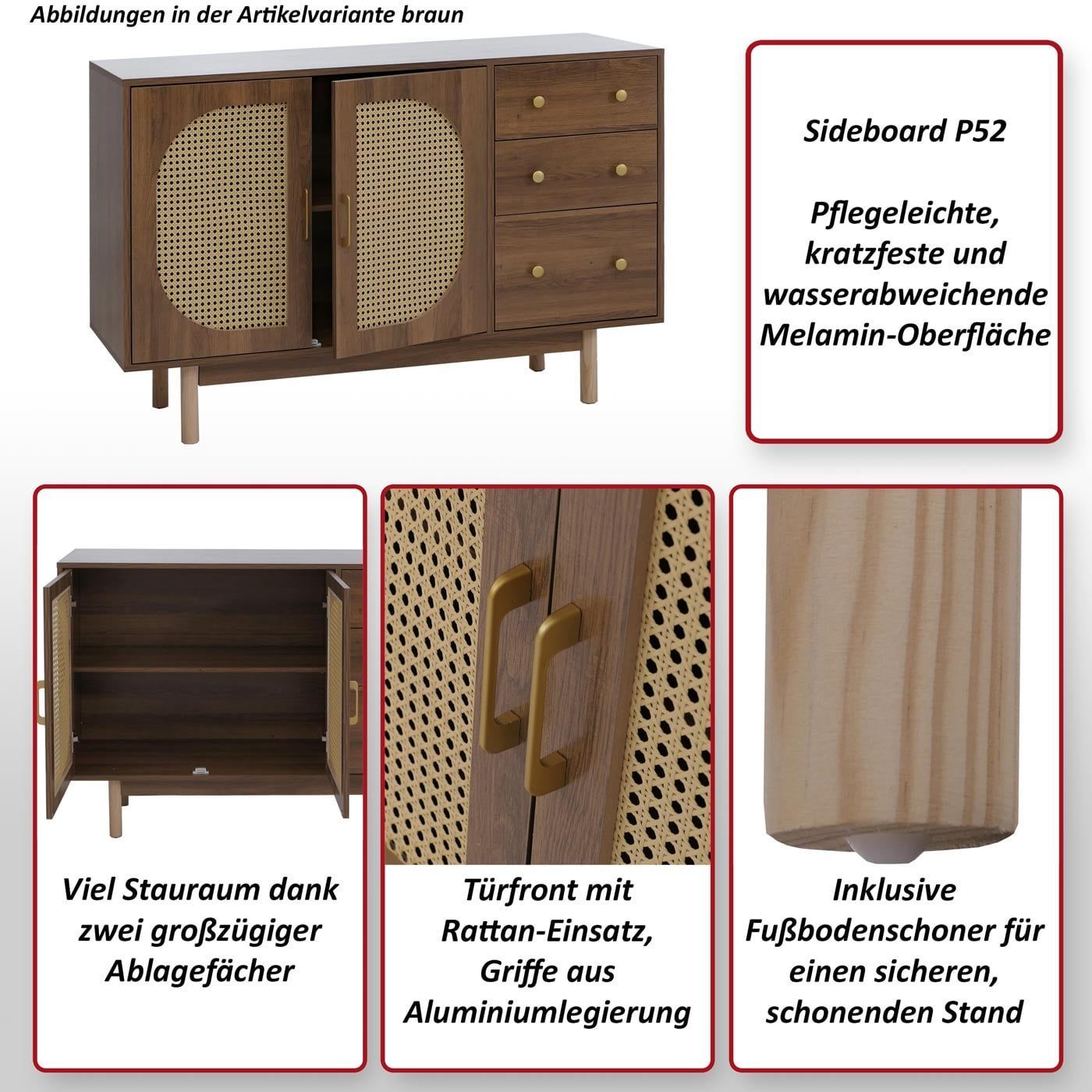 Mendler Sideboard HWC-P52, Schrank Staufächer, Poly-Rattan MDF Melamin 80x120x40cm braun