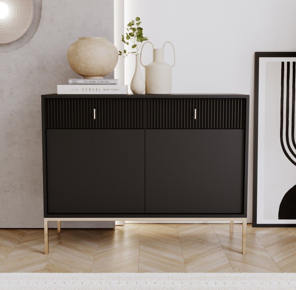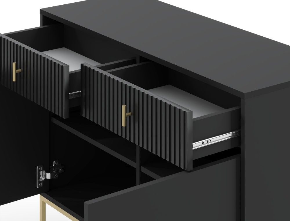 Sideboard Kommode 2T/2S Highboard Anrichte Wohnmöbel Schrank Schwarz Gold