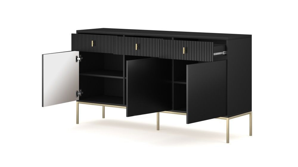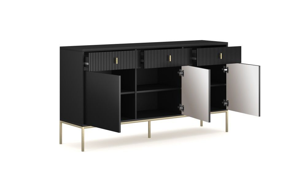 Sideboard Kommode 3T/3S Highboard Anrichte Wohnmöbel Schrank Schwarz Gold