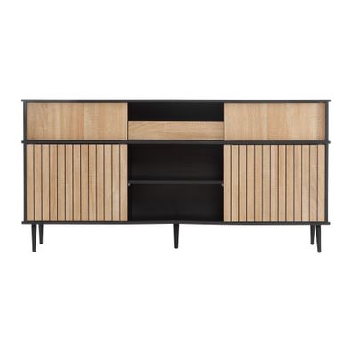 • Kommode Sideboard 160 cm mit 4 Türen 1 Schublade Eiche Schwarz