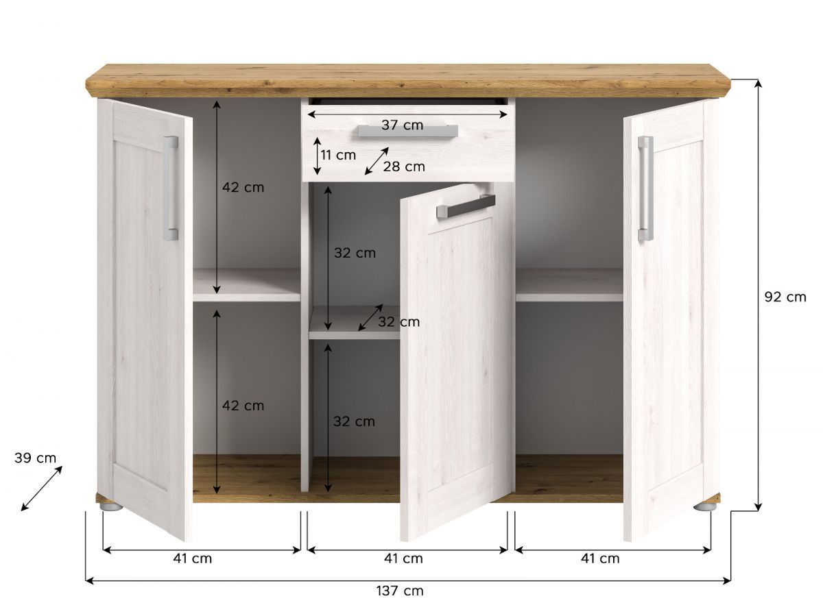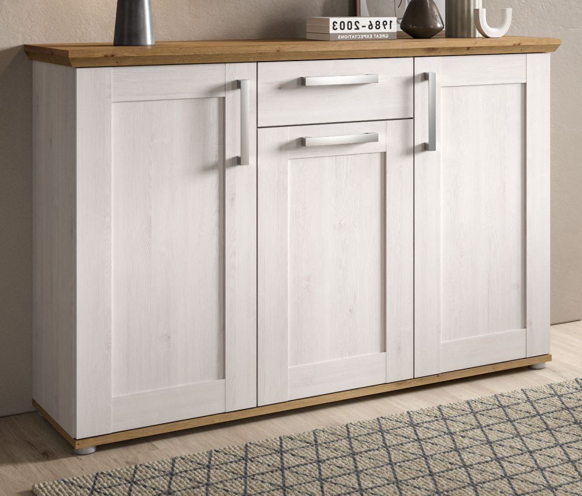 Sideboard Kommode in weiß Lärche und Eiche Landhaus Anrichte Mirano 137 x 92 cm
