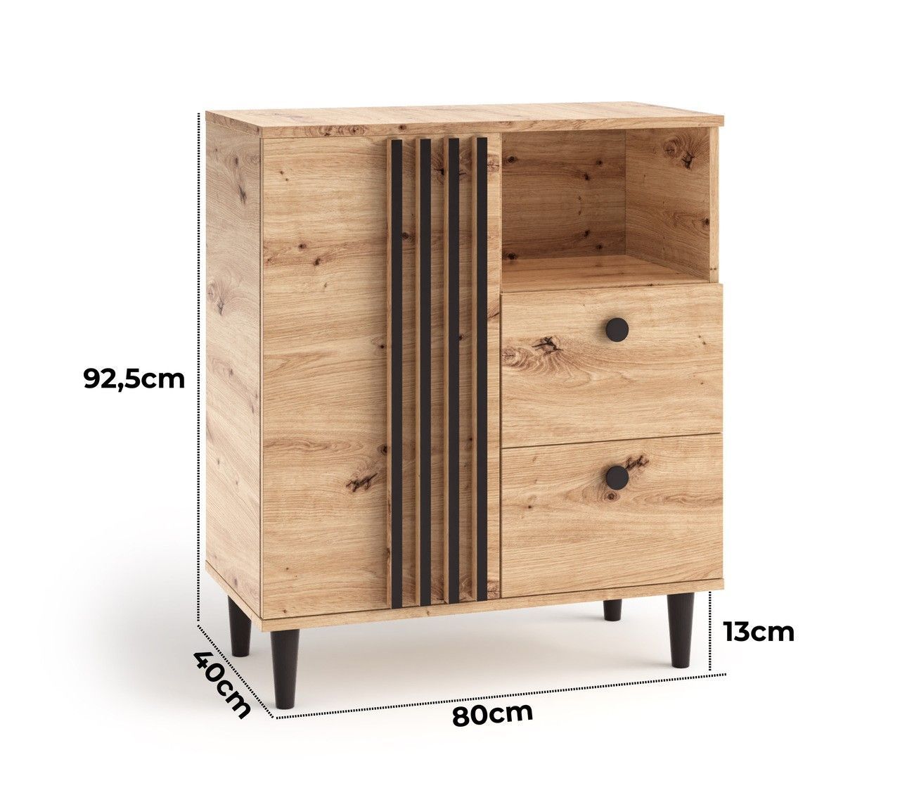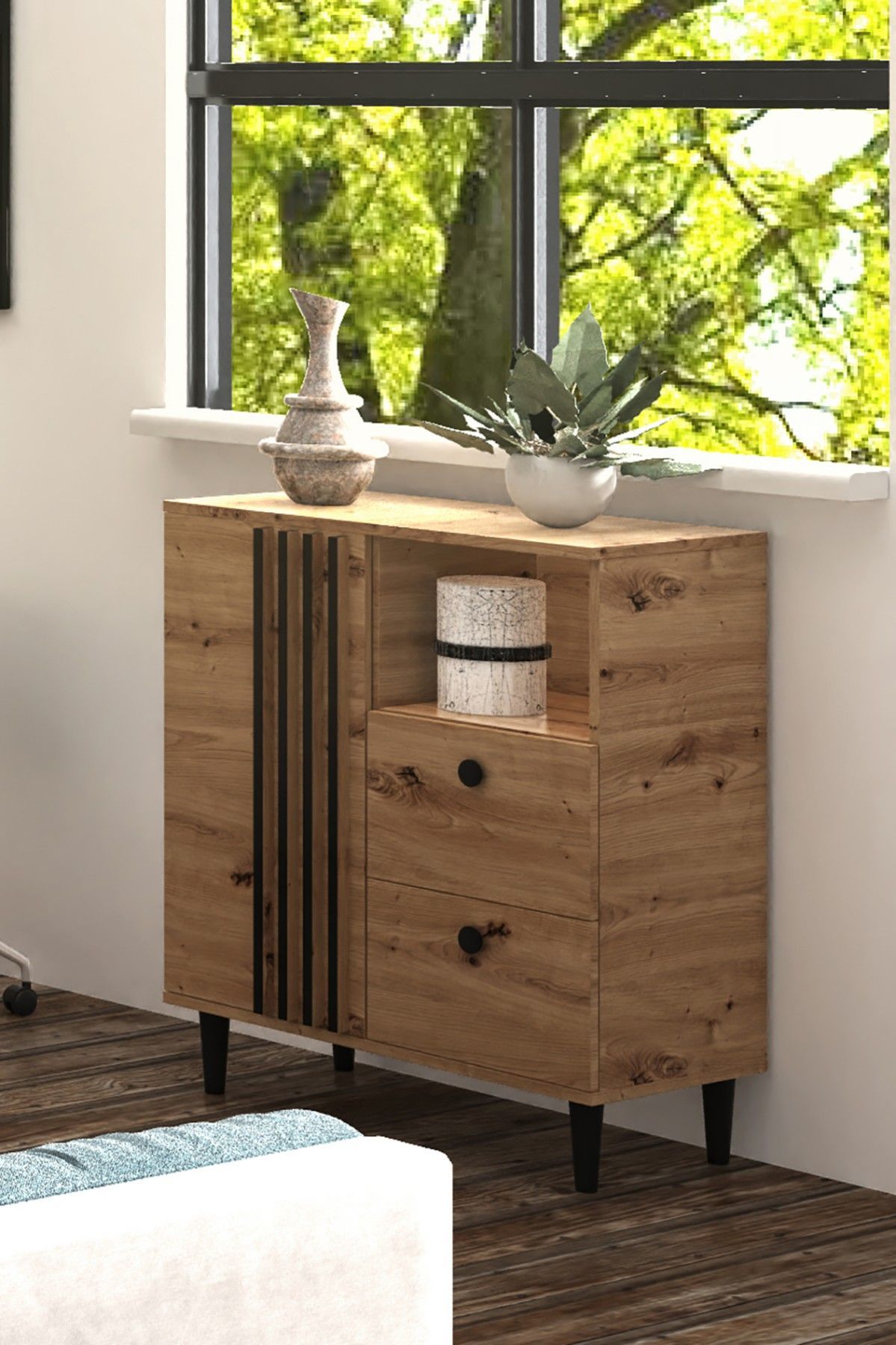 Sideboard Kommode Laura IV Eiche Holz in Natur Schwarz Wohnzimmerschrank EicheArtisan