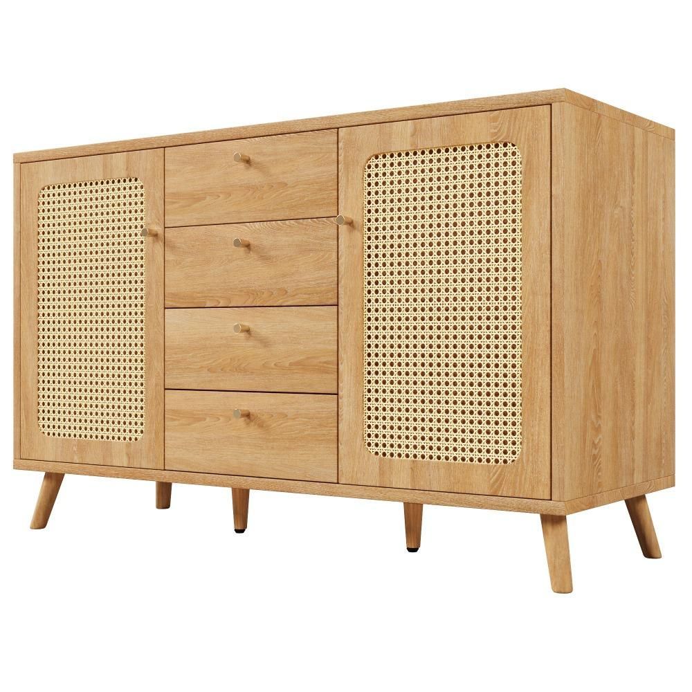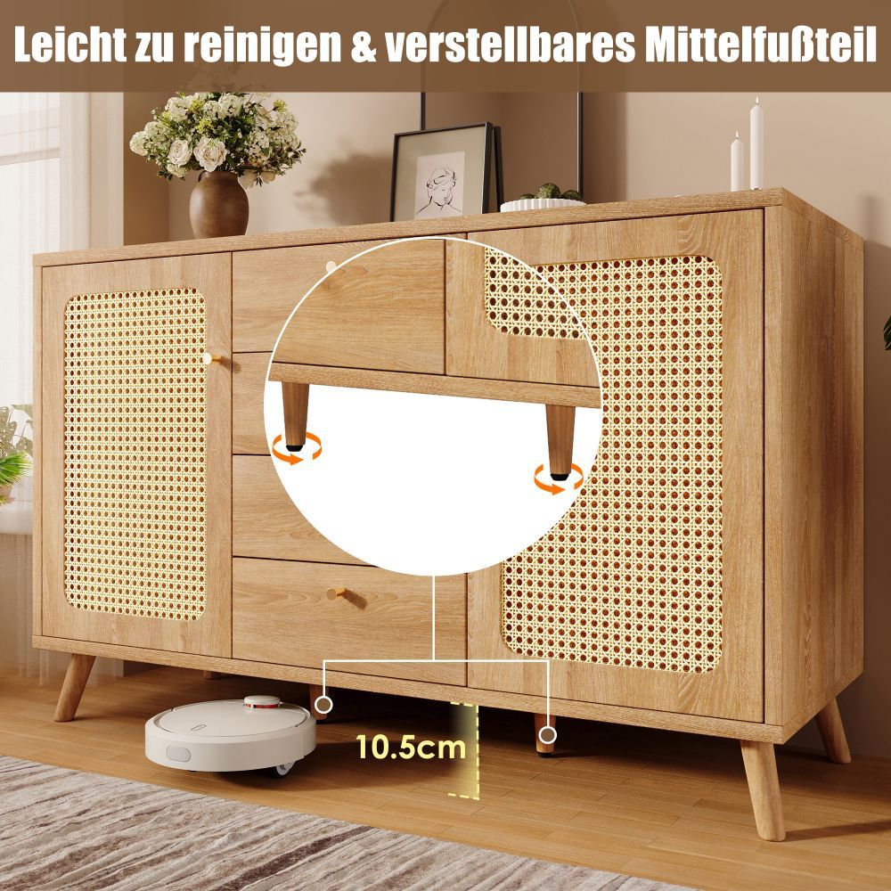 Sideboard Kommode Rattan Optik 4 Schubladen 2 Türen helle Eiche