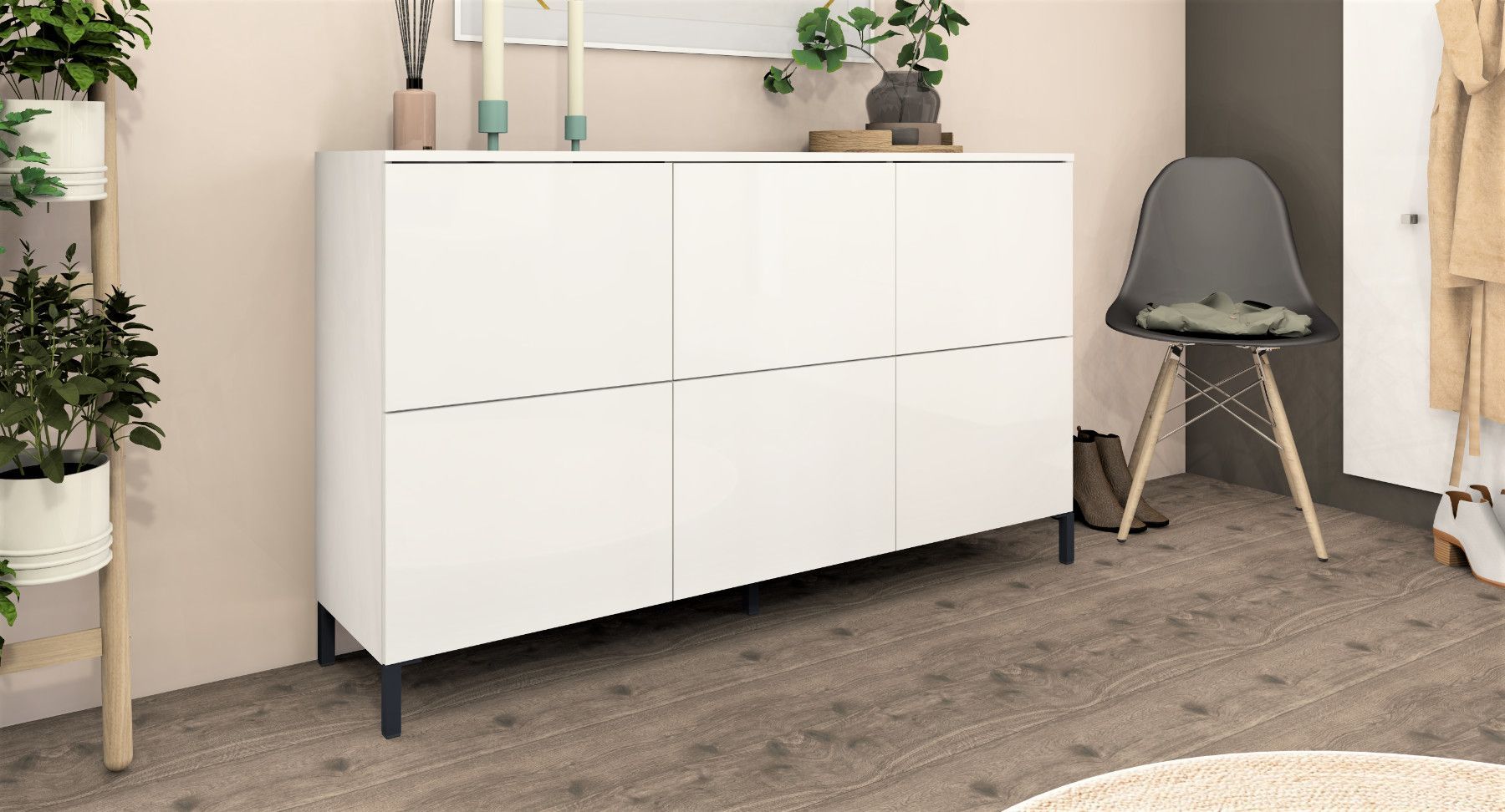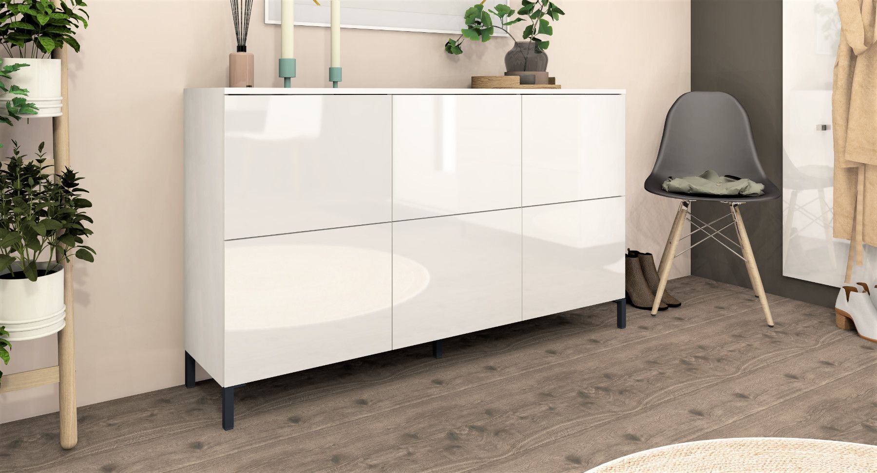 Sideboard Kommode Schrank Anrichte Highboard Haama in Weiß Hochglanz und Matt 6 Türen