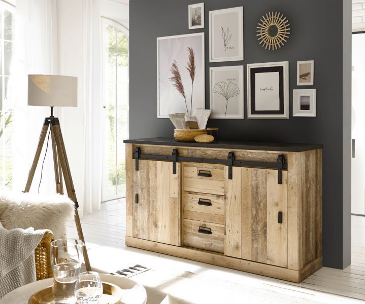 Sideboard Kommode Used Wood Anrichte Schiebetüren 160x90 cm mit Soft-Close Stove