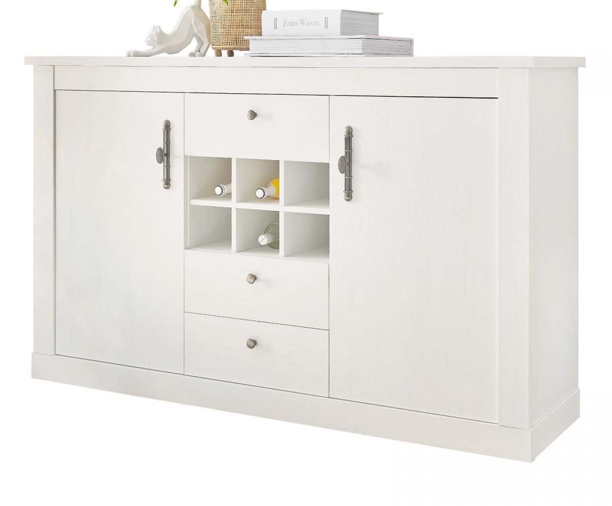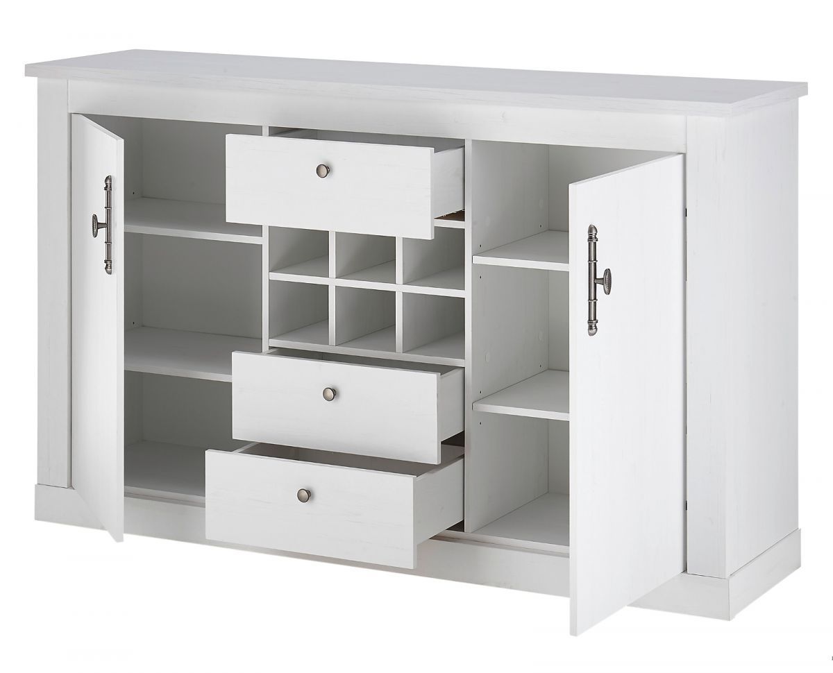 Sideboard Kommode weiß Pinie Anrichte mit Soft-Close Landhaus Fiastra 166 cm