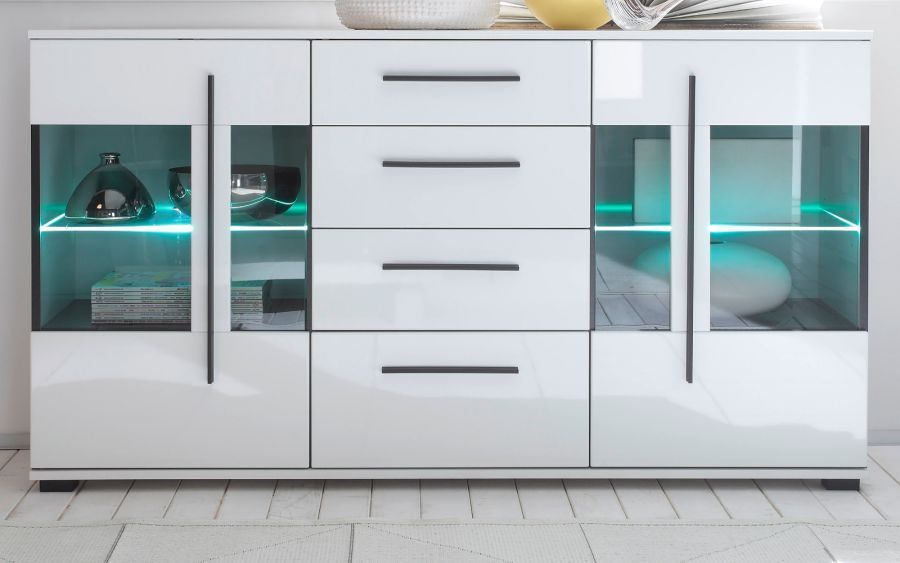 Sideboard Kommode Wohnzimmer Esszimmer Anrichte weiß Hochglanz Design-D 150 cm