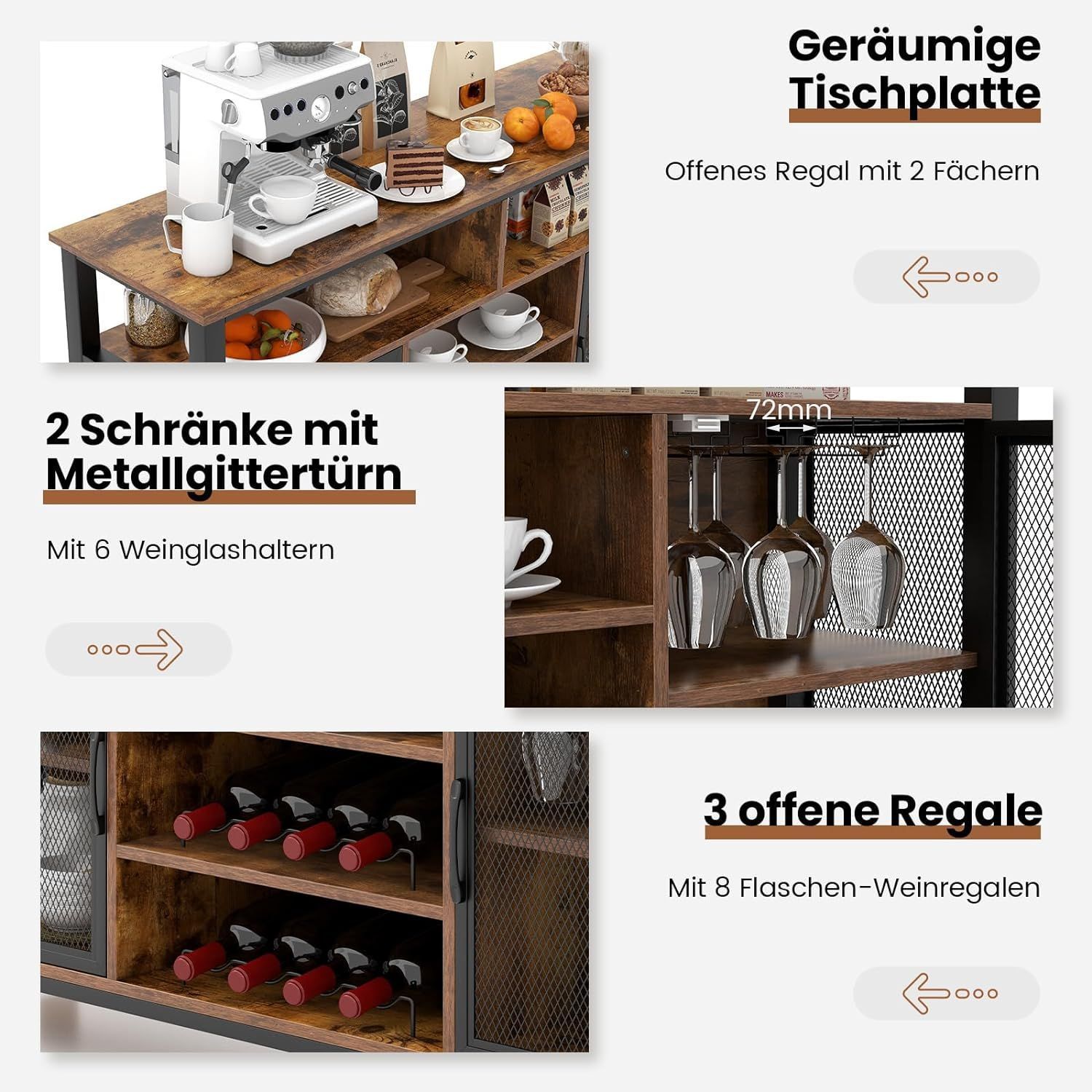 Sideboard, Küchenschrank mit 2 Metallgittertüren, offenen Fächern, Weinregalen