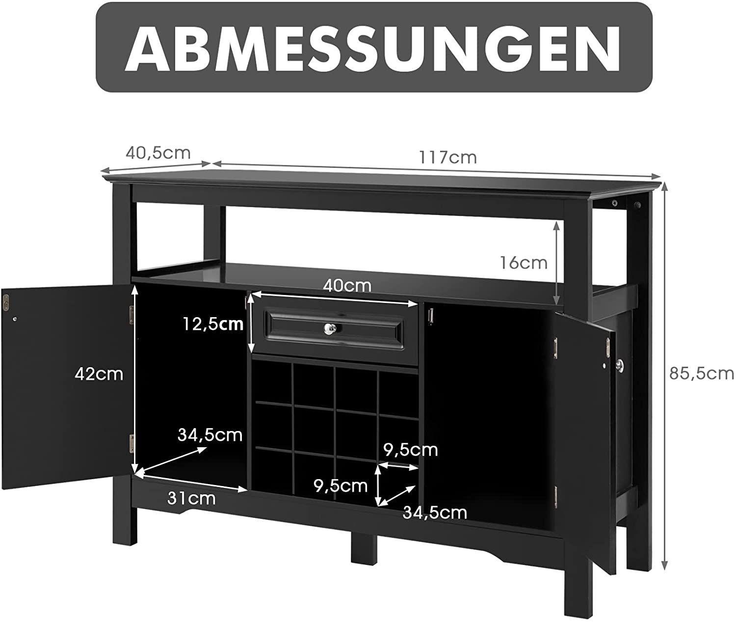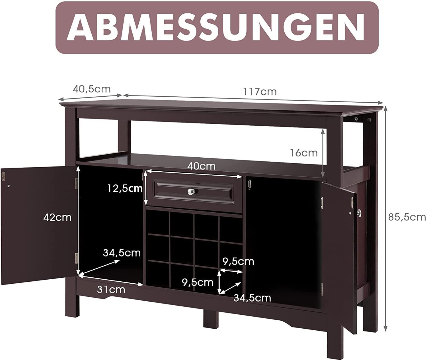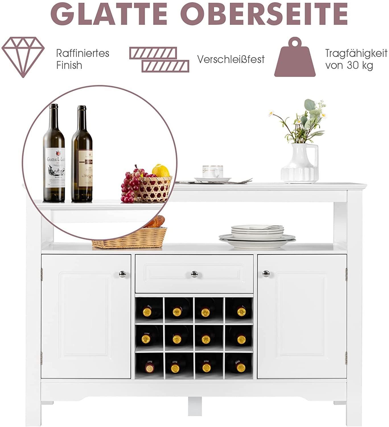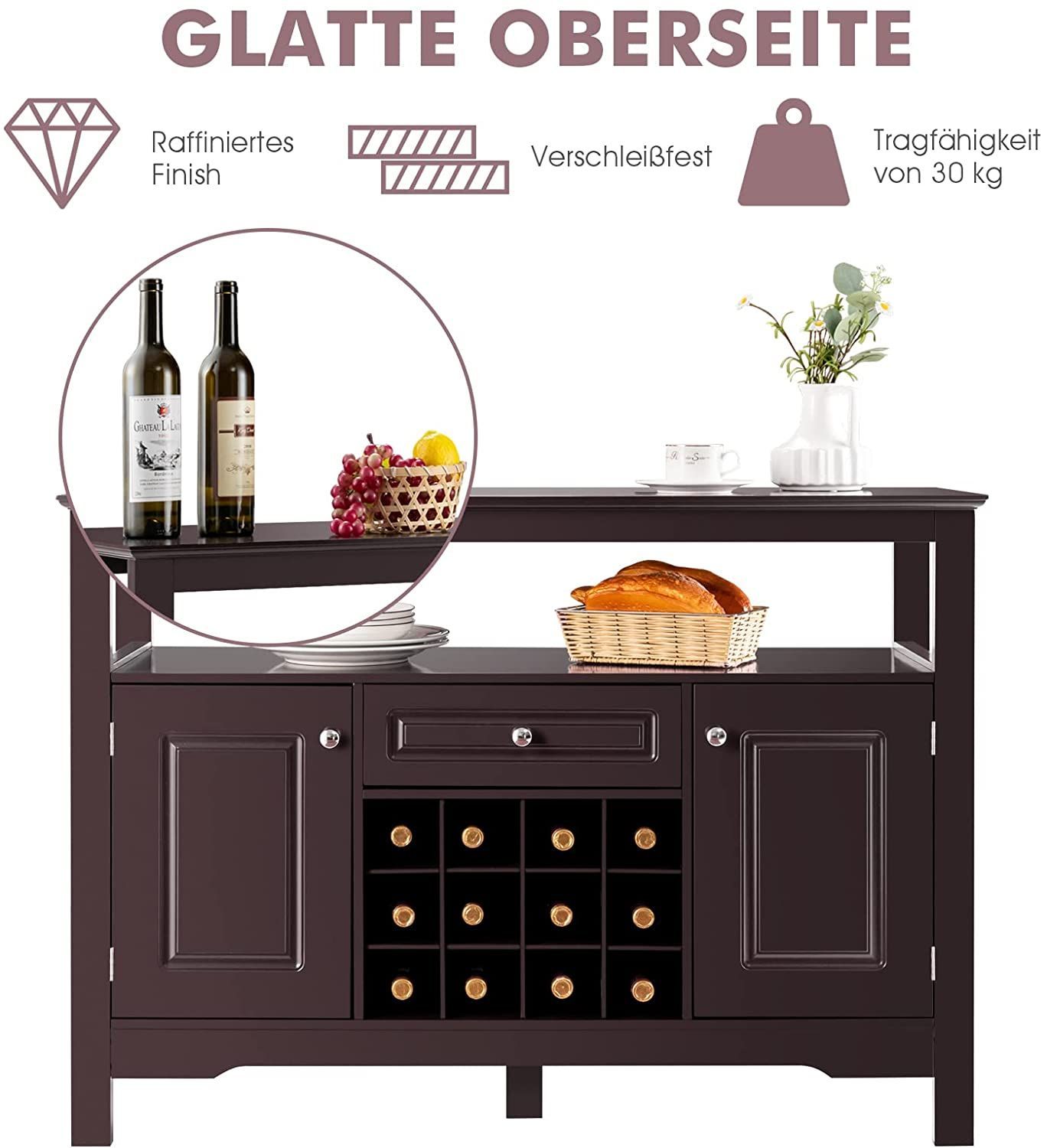 Sideboard Küchenschrank mit Türen und Schubladen, Konsolentisch Holz Küchekommode