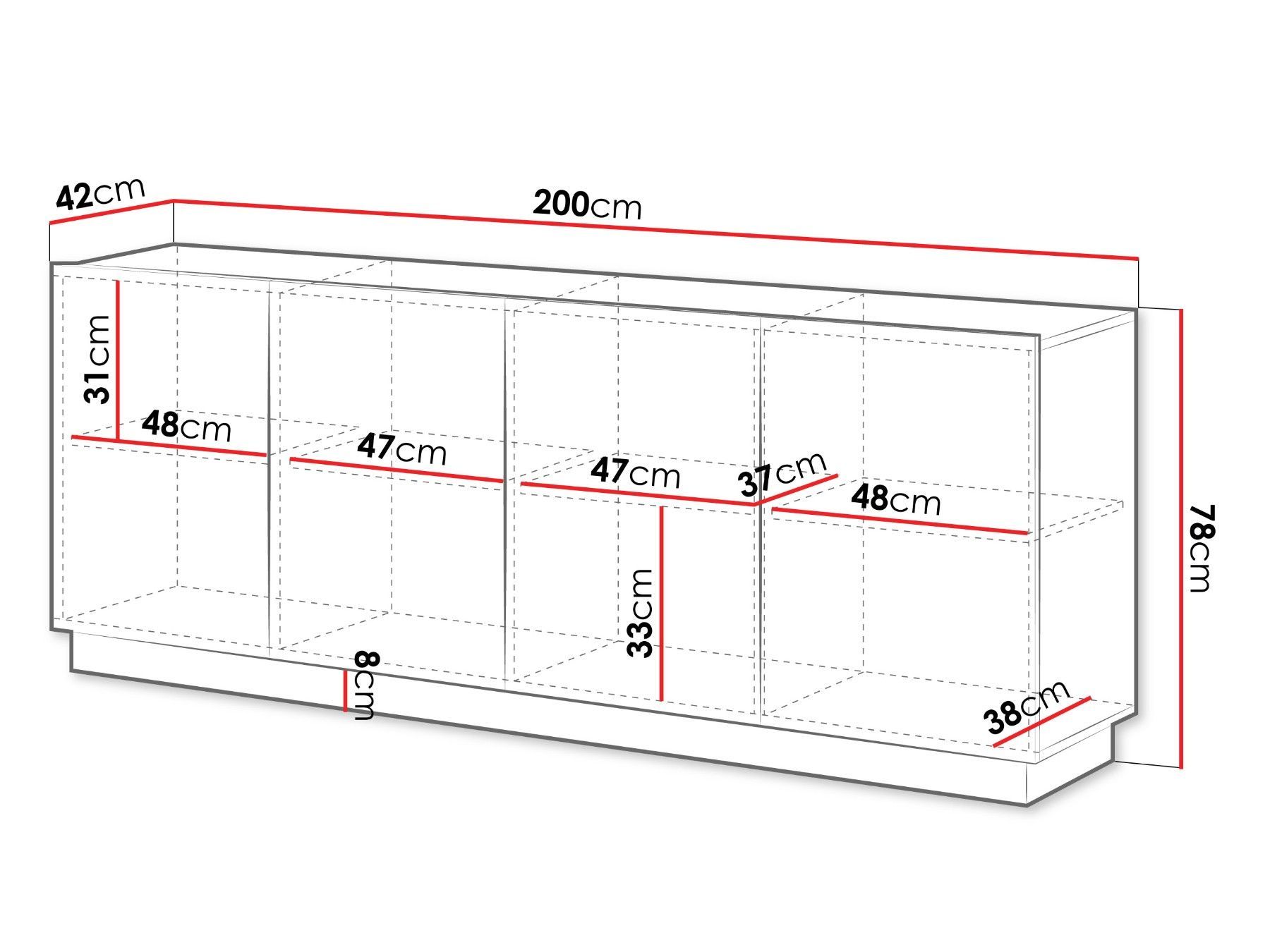 Sideboard Liverti 200 4D Stilvoll Wohnzimmer, Sideboard mit vier Drehtüren