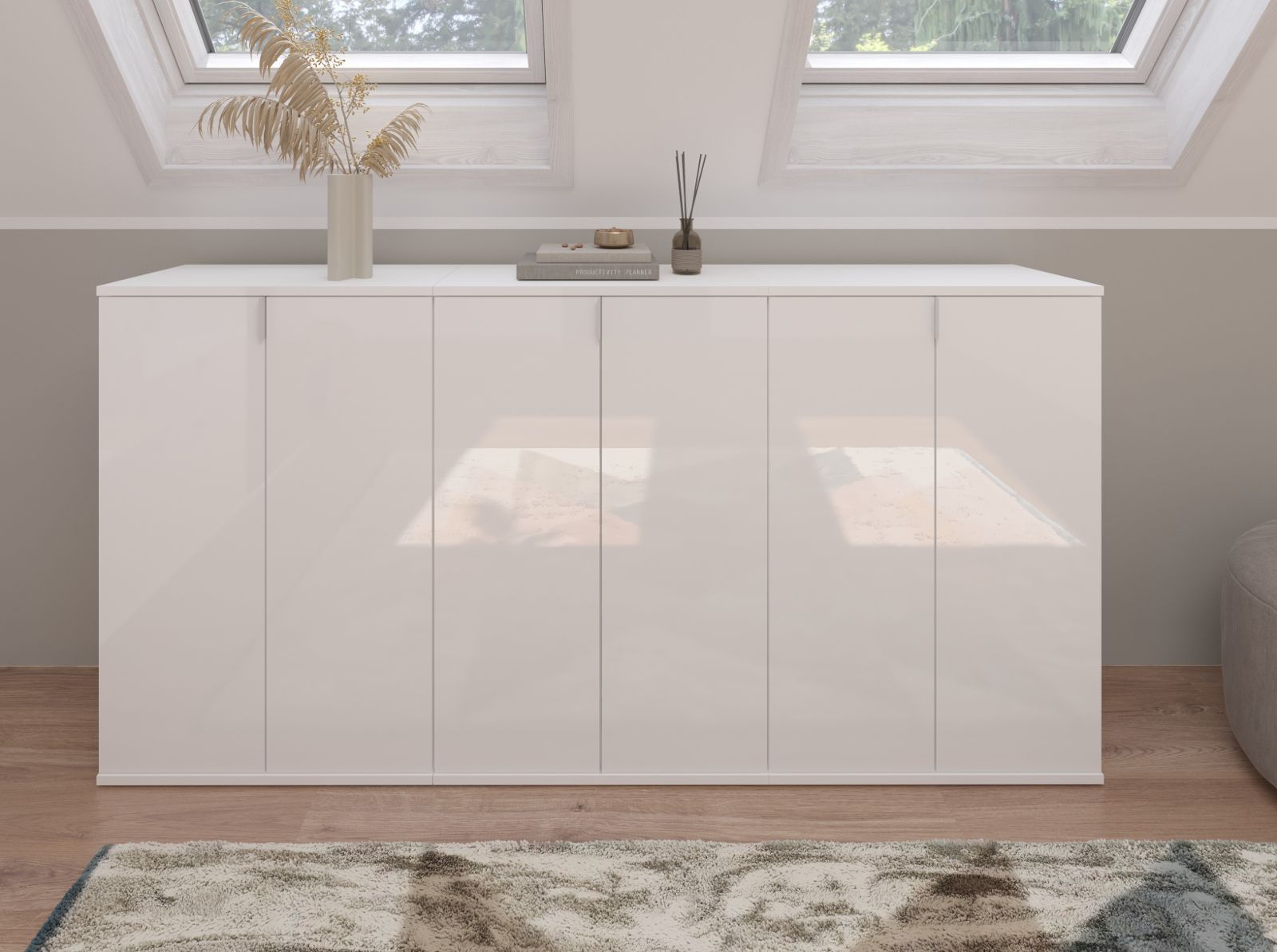 Sideboard Mehrzweckschrank weiß Hochglanz Anrichte Kommode SystemX 183 cm