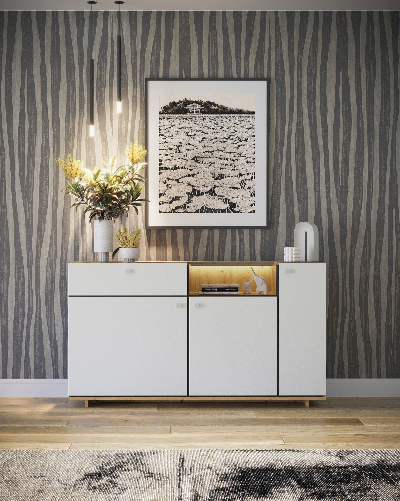 Sideboard Modico MC-07 Schrank 3 türiger Kommode Wohnzimmerschrank mit Schublade