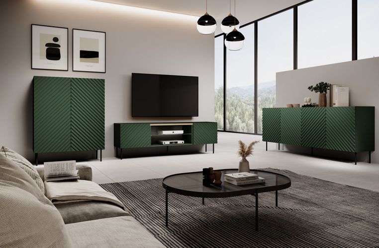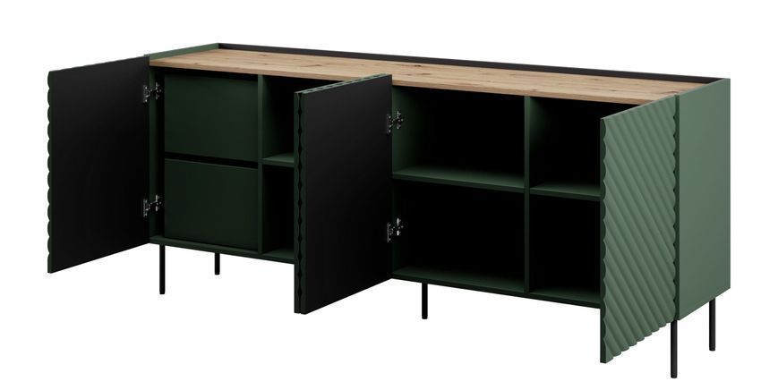 Sideboard ONDA Kommode 200x85x45 cm 4 türiger mit 2 Schubladen MDF grün matt
