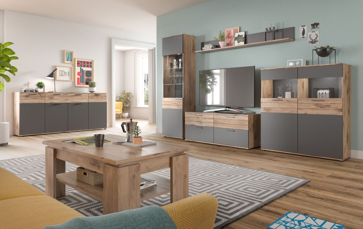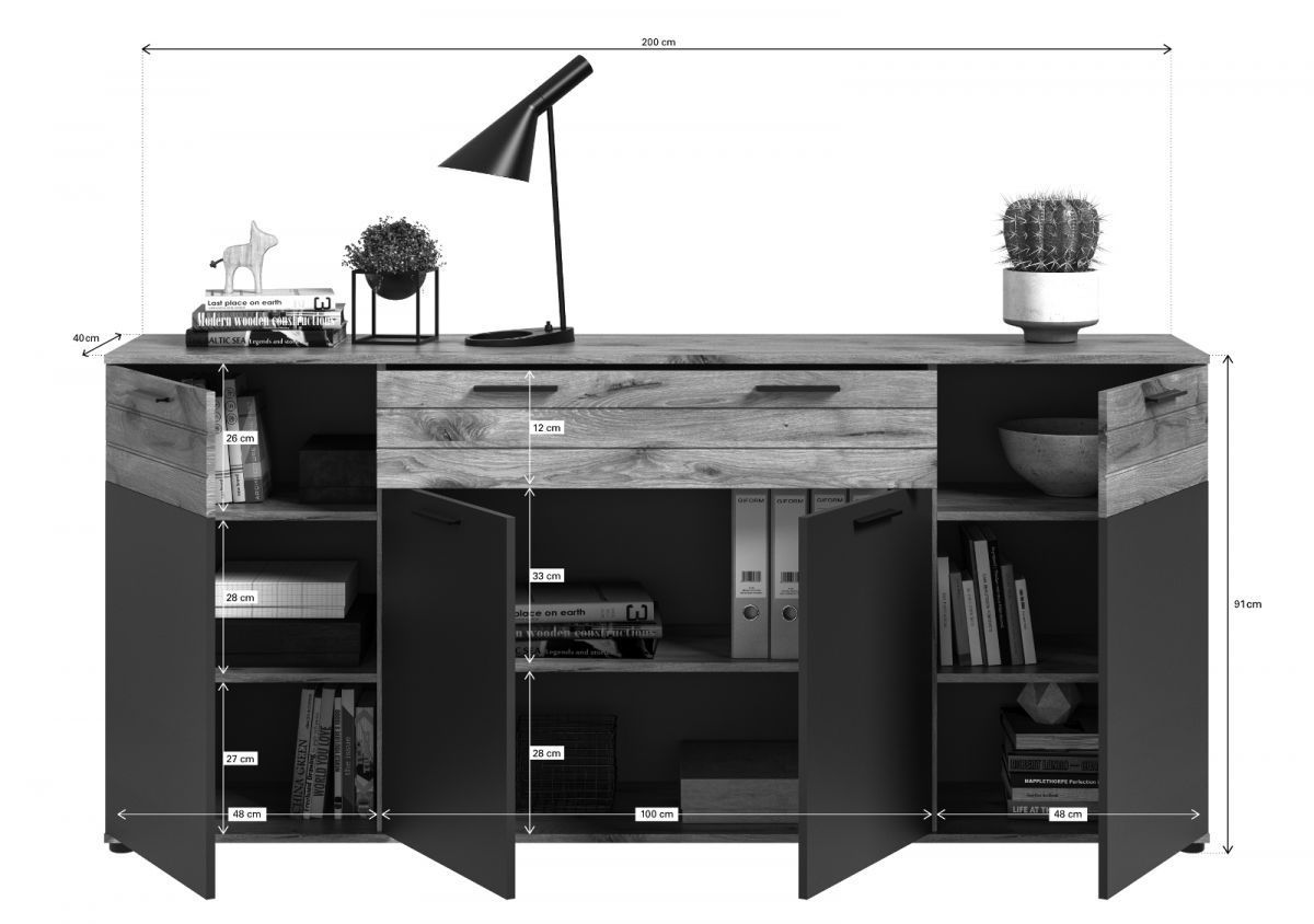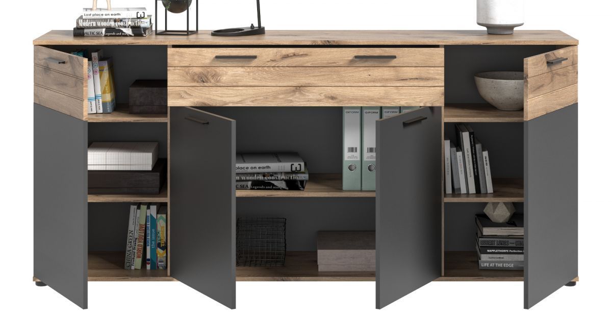 Sideboard "Tomaso" in Nox Eiche und Basalt grau Wohn- und Esszimmer Kommode 200 x 91